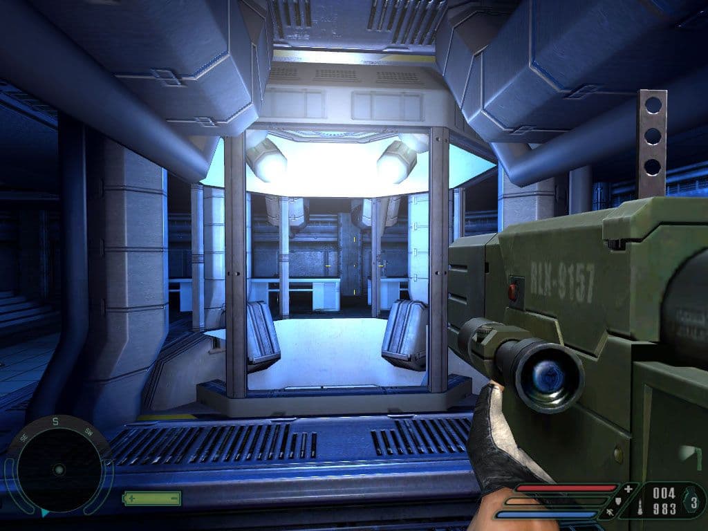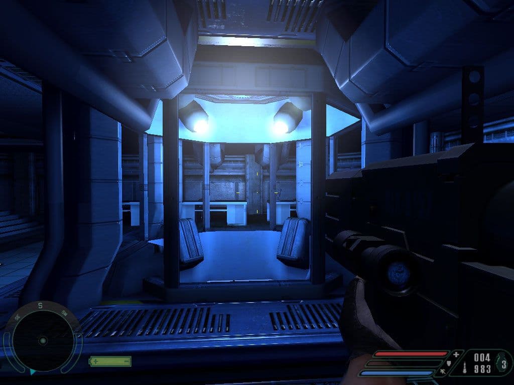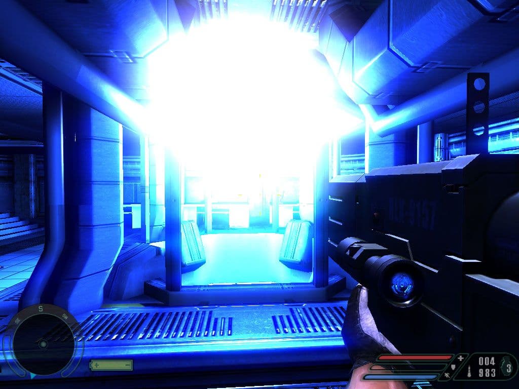 - Использование SM 3.0 против SM 2.0 у GeForce 6800 Ultra дает некоторый прирост скорости, что уже как раз и объясняет дело. Ведь именно в этой части уровня используются сложные расчеты освещенности рельефных стен, а также различного оборудования от бликов фонарей и иных источников света. Поэтому убирание многопроходности и использование единого сложного шейдера дает свой эффект.