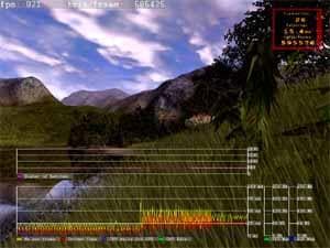 Во-первых, нас очень порадовал усовершенствованный граф производительности, на котором теперь может отображаться и легенда, а также появилась информация о количестве полигонов в кадре и объёме используемой набортной / AGP памяти. В будущем будут полезными также и опциональные графы температуры для карт семейства NV3x, обладающих термодатчиком (пока они заблокированы в данной версии). Весьма полезный инструмент для разработчиков (отметим однако, что графы по-прежнему некорректно отображаются при включении полноэкранного сглаживания):
