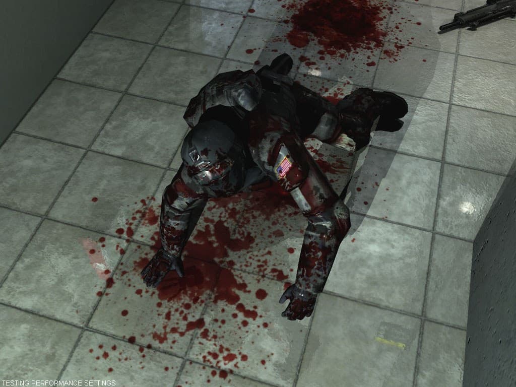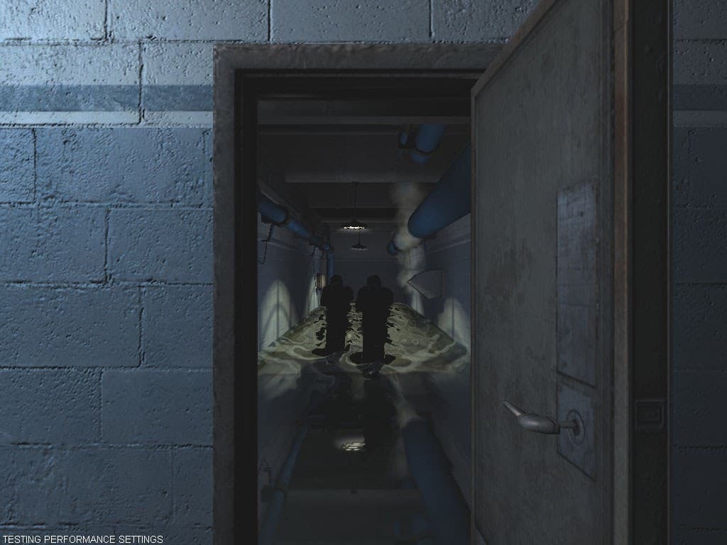 - F.E.A.R. (Multiplayer beta) (Monolith/Sierra) DirectX 9.0, мультитекстурирование, настройки тестирования maximum, Soft shadows.