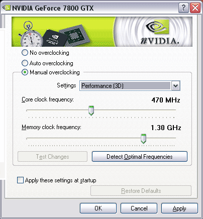 Напомню, что со времен GeForce FX у карт старшего уровня есть ТРИ режима работы: 3D высокой производительности (3D High Power), 3D-малой производительности (3D Low Power) и 2D. Средний режим в настройках драйверов NVIDIA не фигурировал никак, его выставить было можно лишь через RivaTuner.