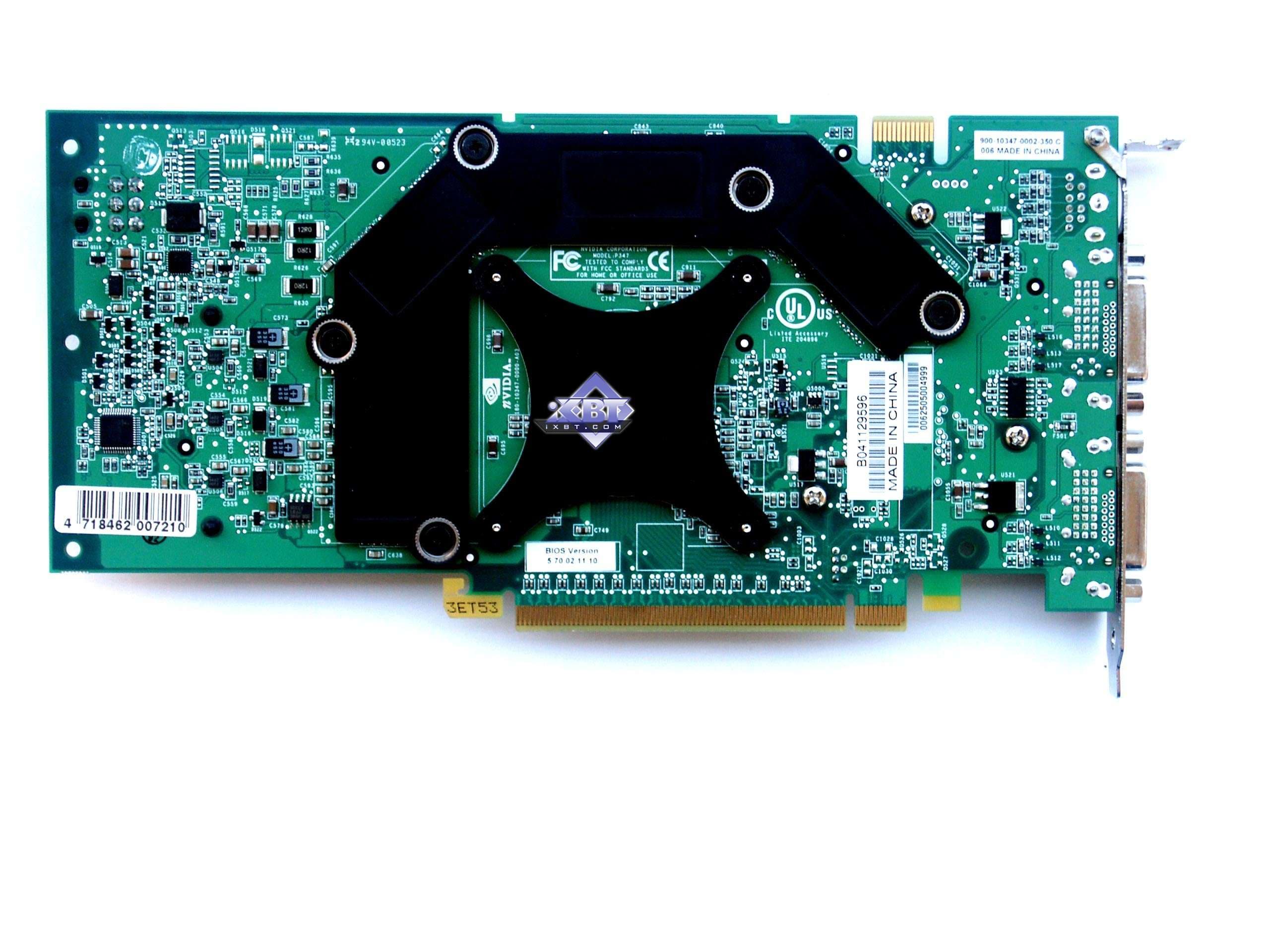 Стоит обратить внимание на то, что процессор изготовлен на 20-й неделе этого года, то есть в мае. Это лишний раз доказывает, что G70 (бывший NV47) был готов давно (ведь уже в мае маркировка была не кодовой, а реальной), а анонс откладывался лишь по маркетинговым соображениям (чтобы максимально дать возможность продажам GeForce 6800GT/Ultra).
