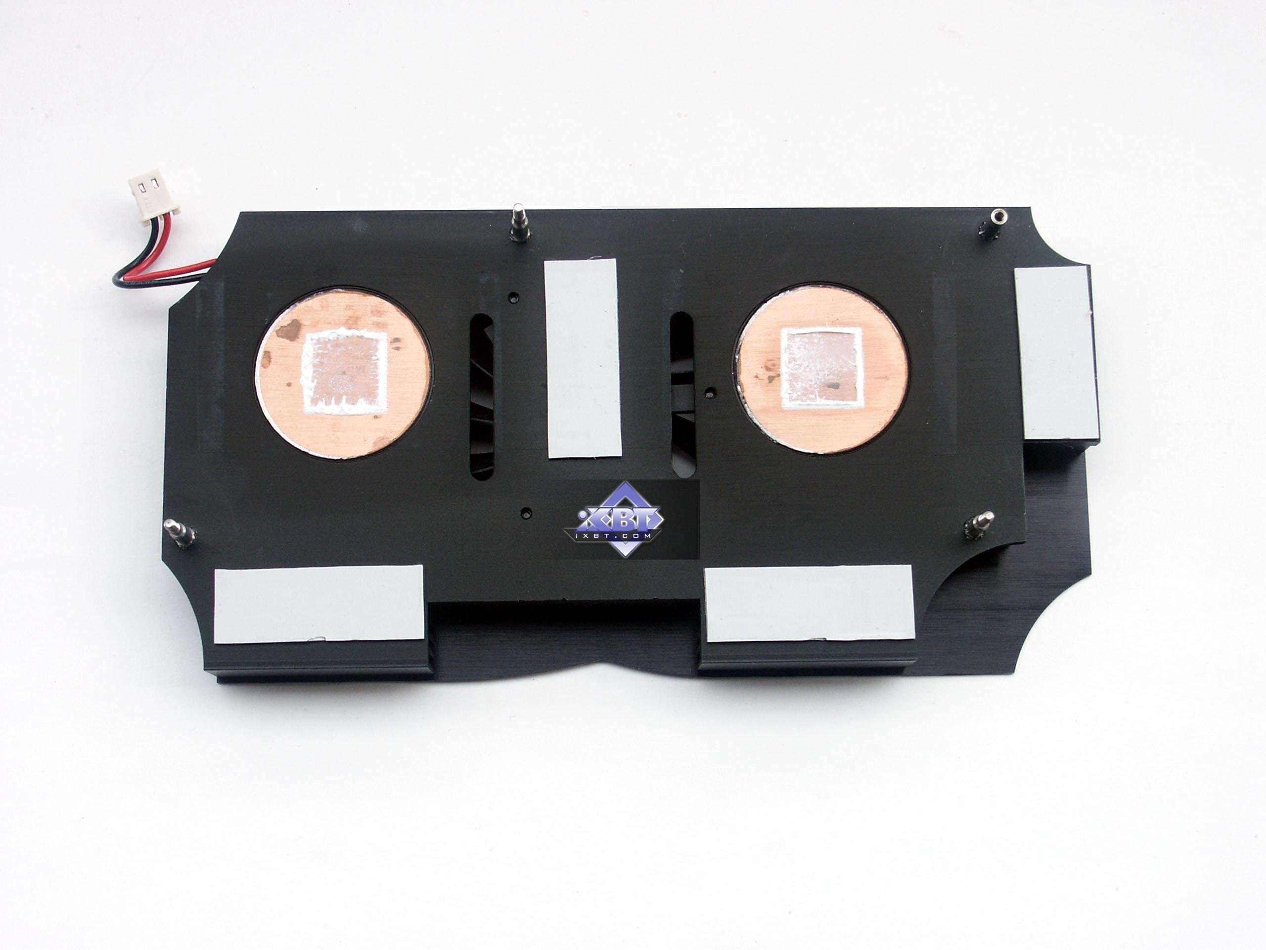 В отличие от решения от Gigabyte на аналогичной карте, в данном случае используется одновентиляторный кулер. При этом очень даже эффективный. Шума почти нет, что является огромным плюсом. Принцип действия простой: вентилятор гонит воздух вдоль длинного радиатора, охлаждая оба GPU. | ![]() |