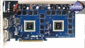 ASUS и Gigabyte почти одновременно заявили о производстве более мощных продуктов, уже на базе GeForce 6800 GT. Однако если Gigabyte реально переделал PCB и разместил два комплекта графический процессор + микросхемы памяти компактно (даже вынеся половину из них на оборотную сторону) и получил ускоритель, который можно установить почти в любой современный просторный корпус, то ASUS пошел по простому пути: просто объединил две PCB от GeForce 6800 GT в одну, и получил карту размером с аэродром. При этом в ряд корпусов с натягом ее можно установить, однако у нее есть и другие минусы, например, сильный шум. Хотя шум от двух кулеров на аналогичном изделии от Gigabyte не меньше.