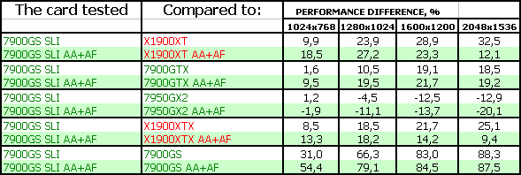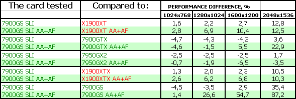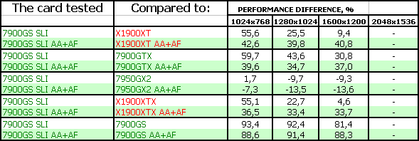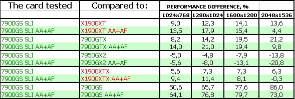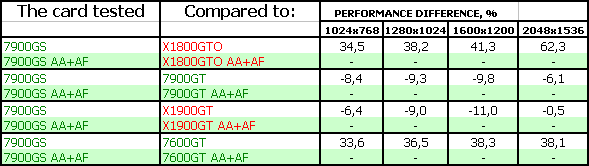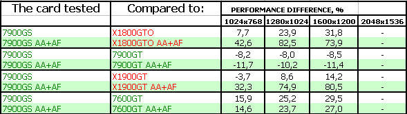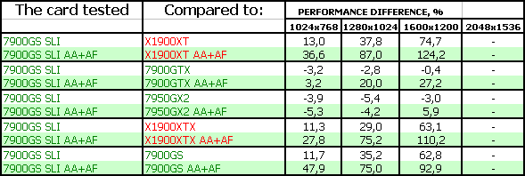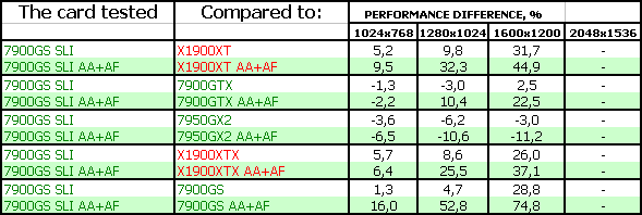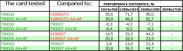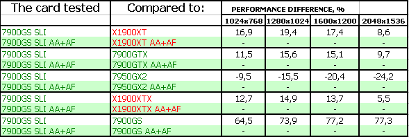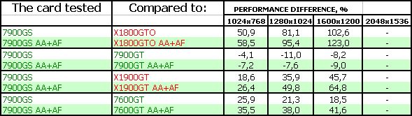 Я не стал комментировать результаты каждого теста, поскольку почти во всех тестах 7900 GS явный лидер в борьбе с его нынешним конкурентом X1800GTO. И даже намного более дорогой (пока) X1900 GT частенько оказывался в проигрыше. Поэтому GeForce 7900 GS оказался лидером среди ускорителей в пределах 200 долларов.