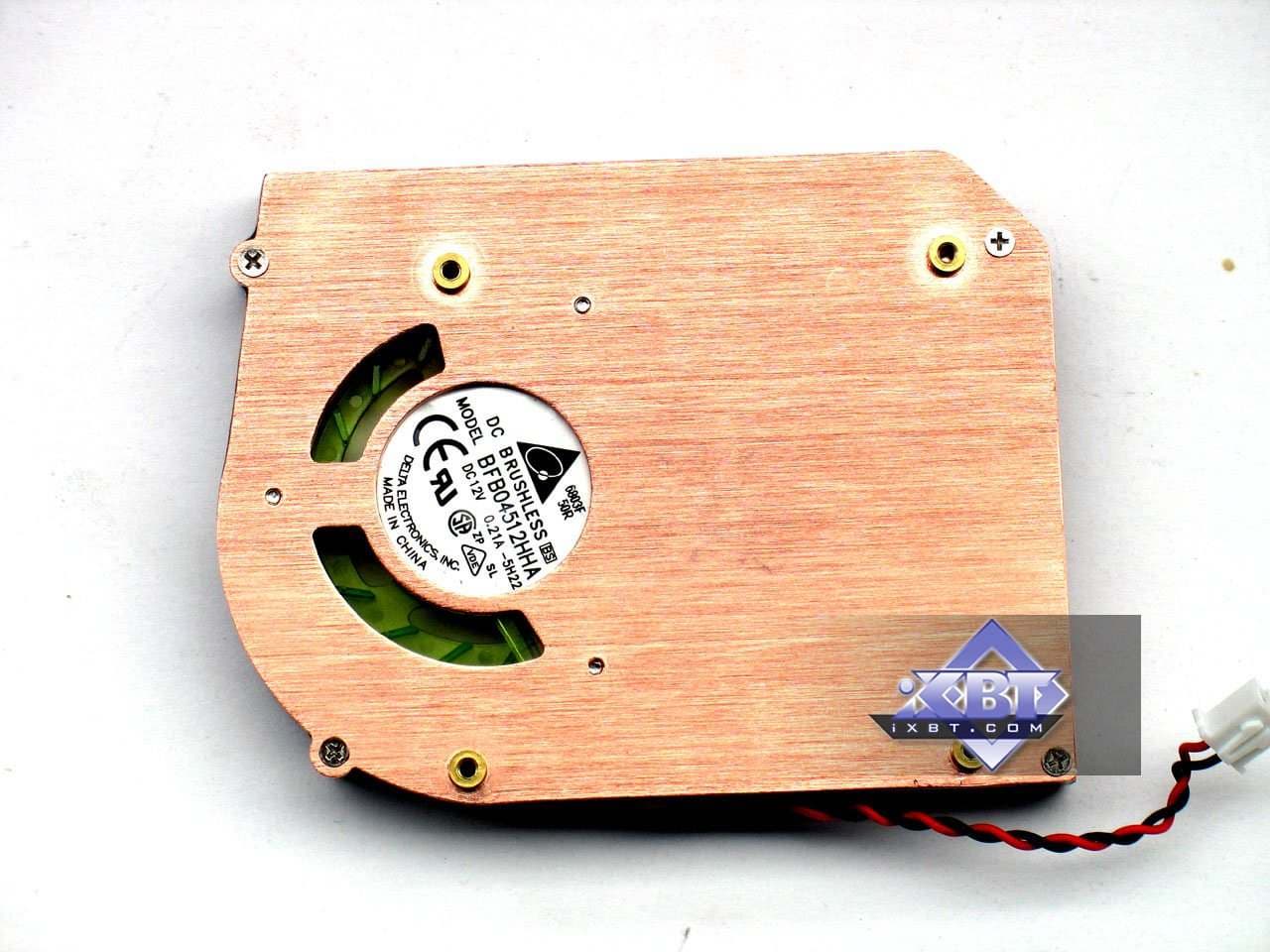 Что касается кулера, то продукт имеет тот же эталонный кулер, что мы видели у 7900 GT. Выполнен из медного сплава, представляет собой закрытый радиатор со смещенным относительно центра вентилятором.