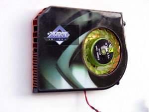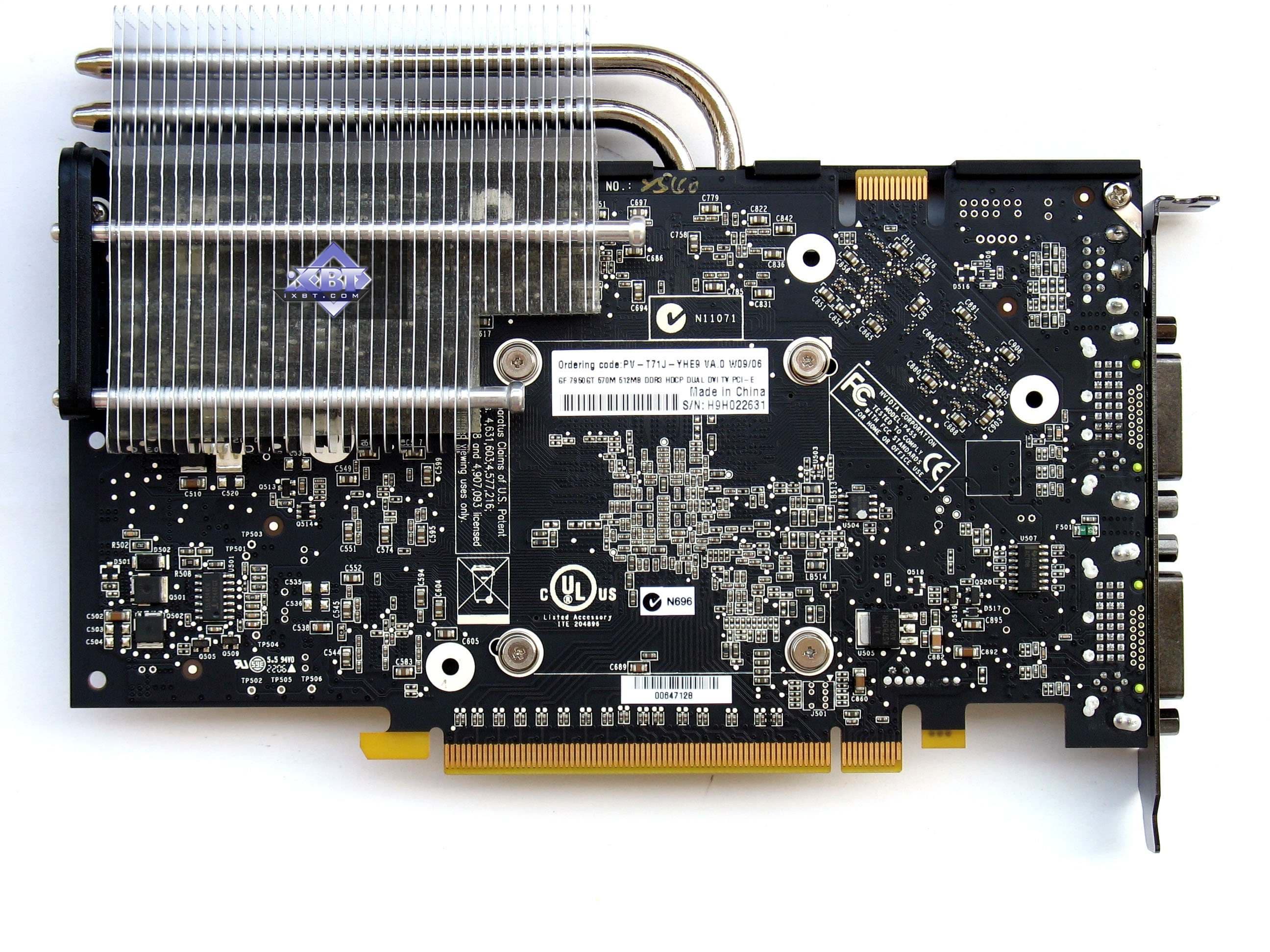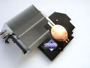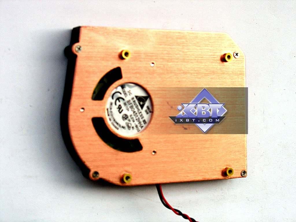 Что касается кулера на референс-карте, что продукт имеет тот же эталонный кулер, что мы видели у 7900 GT. Выполнен из медного сплава, представляет собой закрытый радиатор со смещенным относительно центра вентилятором.