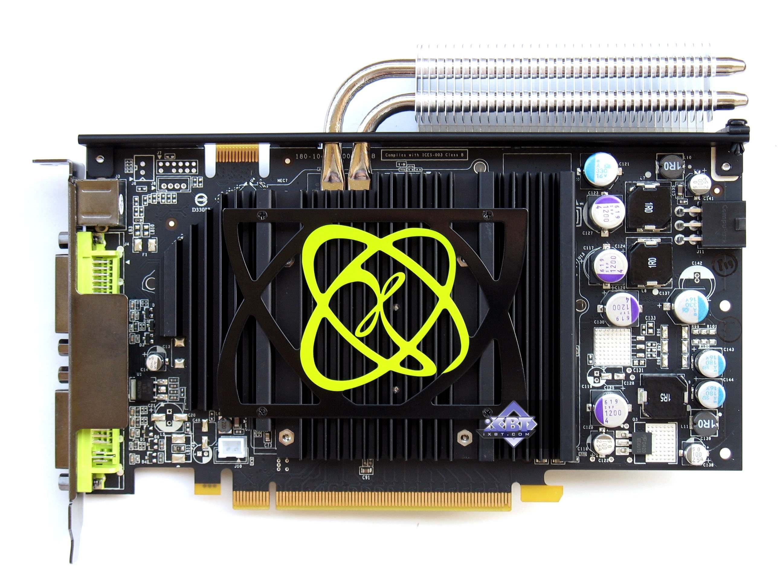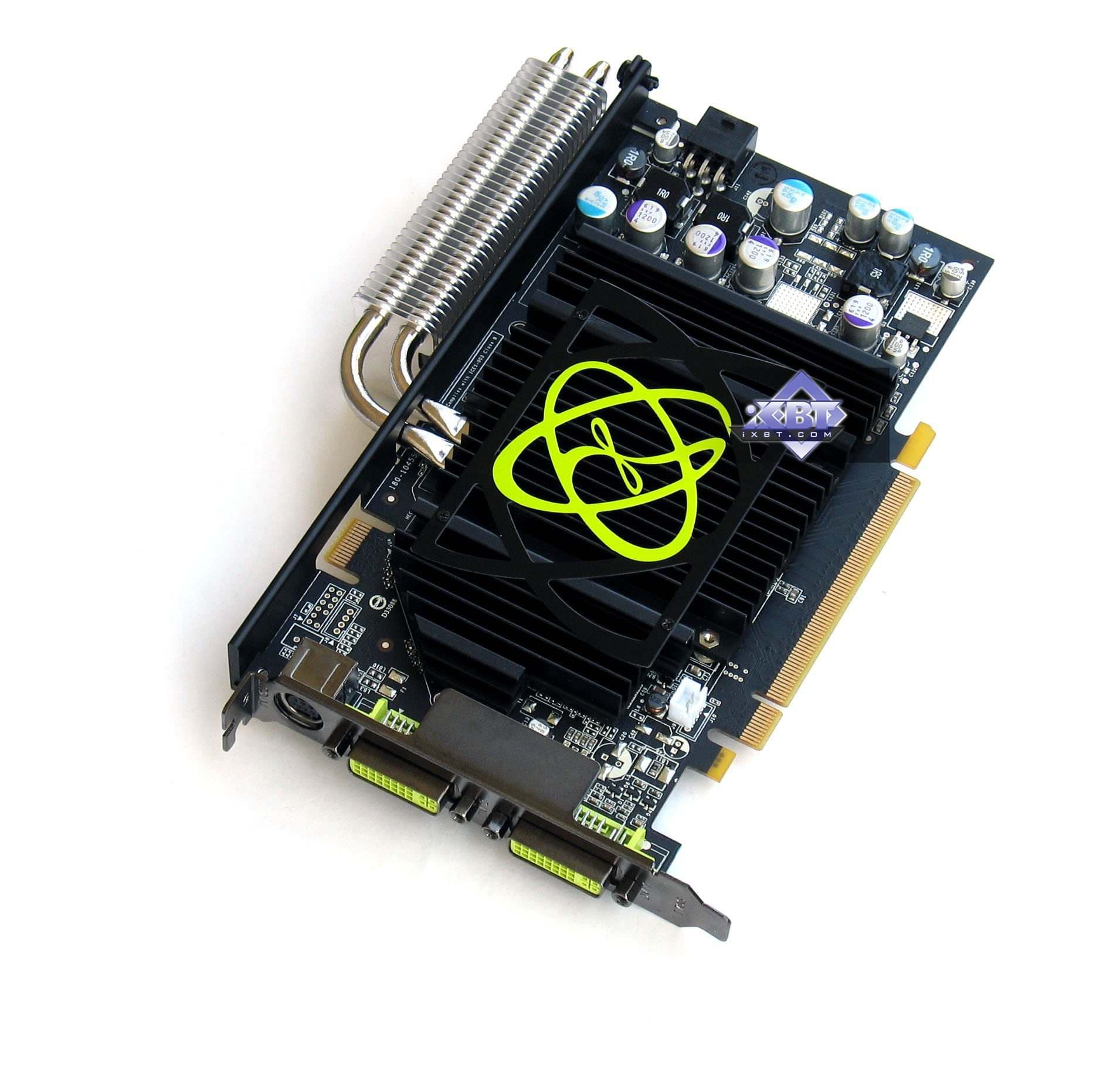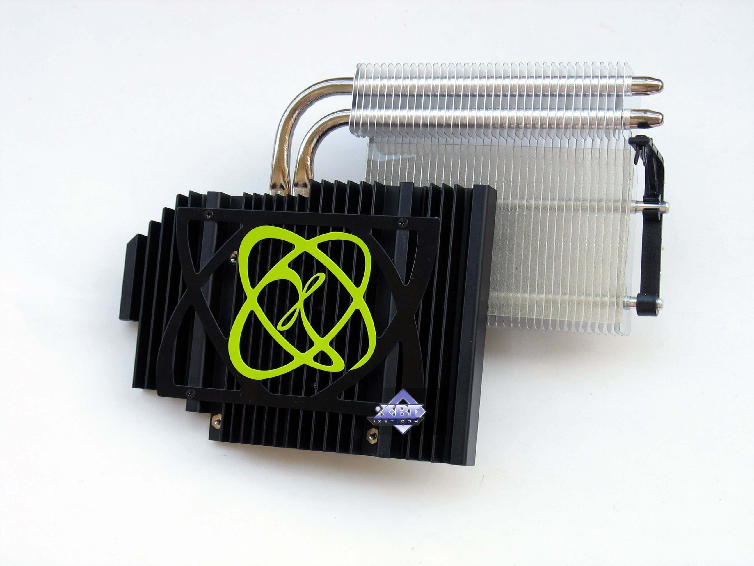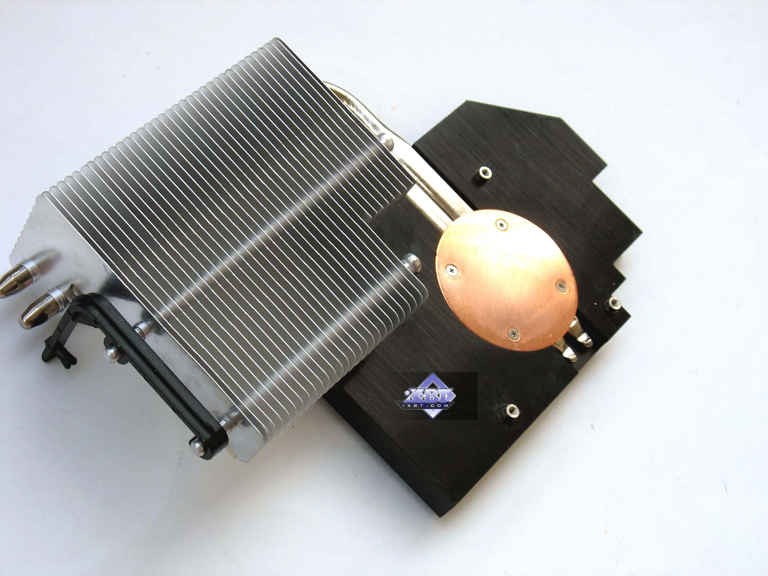 Устройство представляет собой систему из двух радиаторов, соединенных между собой тепловыми трубками. Не ново, правда? Мы уже видели нечто подобное, но опять же, не на ускорителях такого уровня. Помнится, самый мощный продукт с пассивным кулером был ASUS GeForce 7800GT Silent, однако ему далеко по скорости до нынешнего изделия.