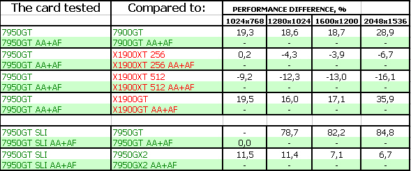| GeForce 7950 GT 299USD | RADEON X1900 XT 256MB 279USD |