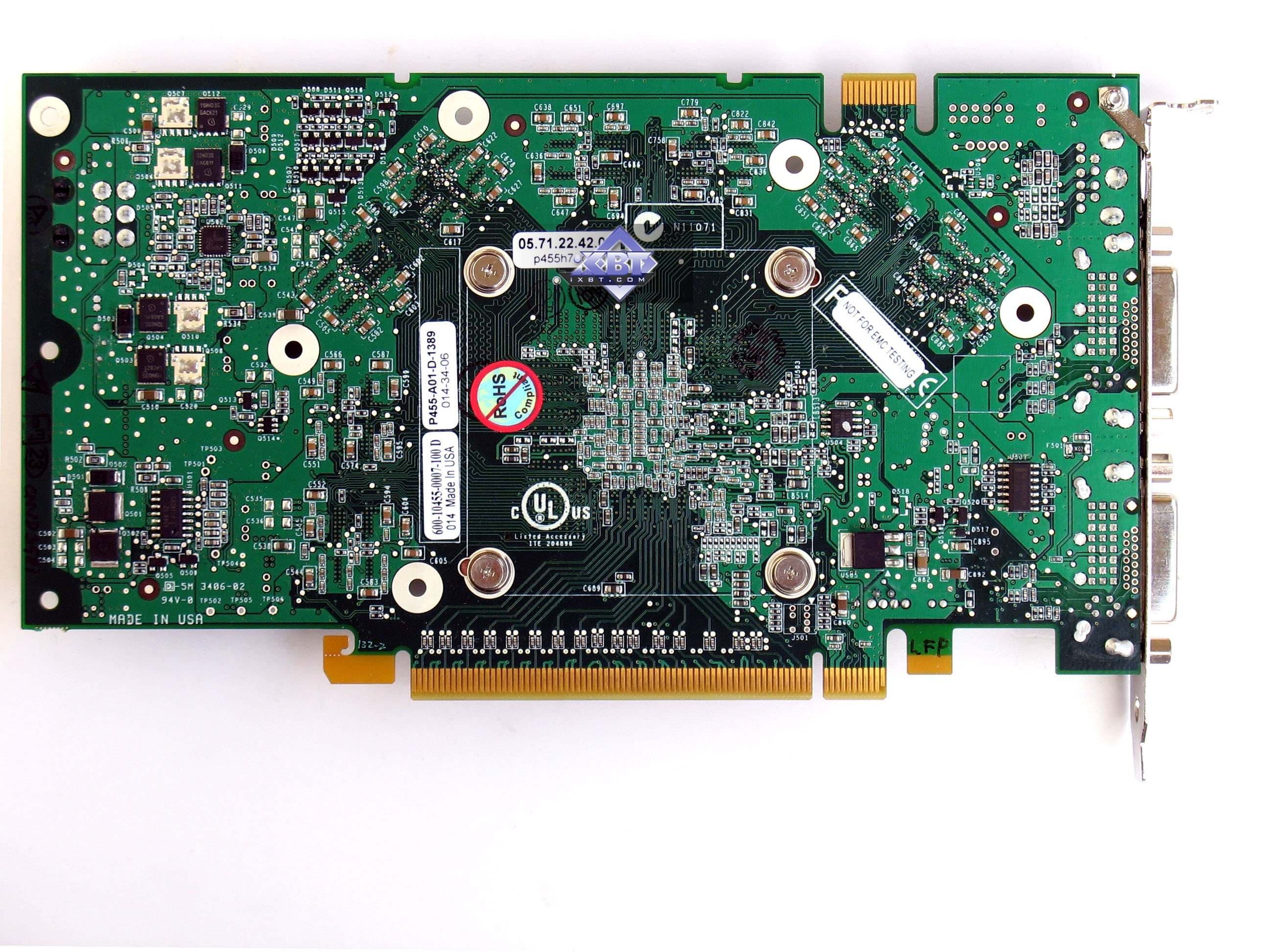 | Каждая карта имеет 512 МБ памяти GDDR3 SDRAM, размещенной в 8-ми микросхемах на лицевой стороне PCB. Микросхемы памяти Infineon (GDDR3). Время выборки у микросхем памяти 1,4 ns, что соответствует частоте работы 700 (1400) МГц. | ![]() |