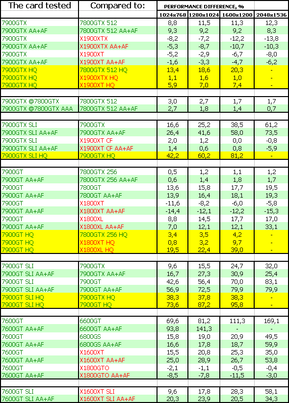 Такая же ситуация и у 7900 GT. И еще лучше у 7600 GT. Все три новинки бесспорные лидеры.