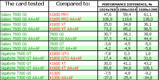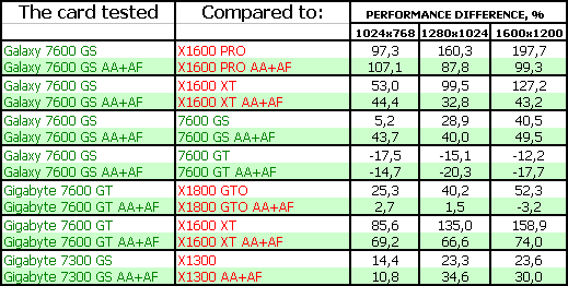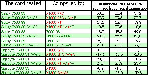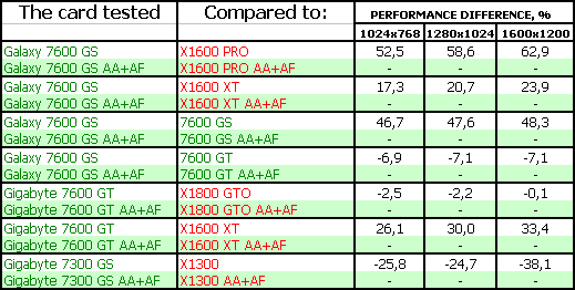 О производителях. Gigabyte настолько известен российскому пользователю, что нет смысла о нем писать. Galaxy — тоже достаточно известная марка, хотя и относительно новая. Это польская фирма, имеющая производство в Китае. Иногда пользуется аутсортингом, то есть не выпускает сама видеокарты, а заказывает их на стороне. По нашему опыту тестирований нареканий к этому вендору не встречалось, продукты добротны. Axle — весьма старинный производитель, много старше, чем Galaxy, уже почти 10 лет присутствующий на нашем рынке, однако, все эти годы довольствовался тем, что его продукты продавались как noname. Очень и очень редко можно в прайс-листах встретить название этого производителя. Видеокарты раньше были весьма посредственного качества, но в последние годы уровень качества вырос. И даже есть интересные решения по дизайну и т.д. Поэтому нам будет весьма любопытно рассмотреть GeForce 7600 GS в исполнении Axle.