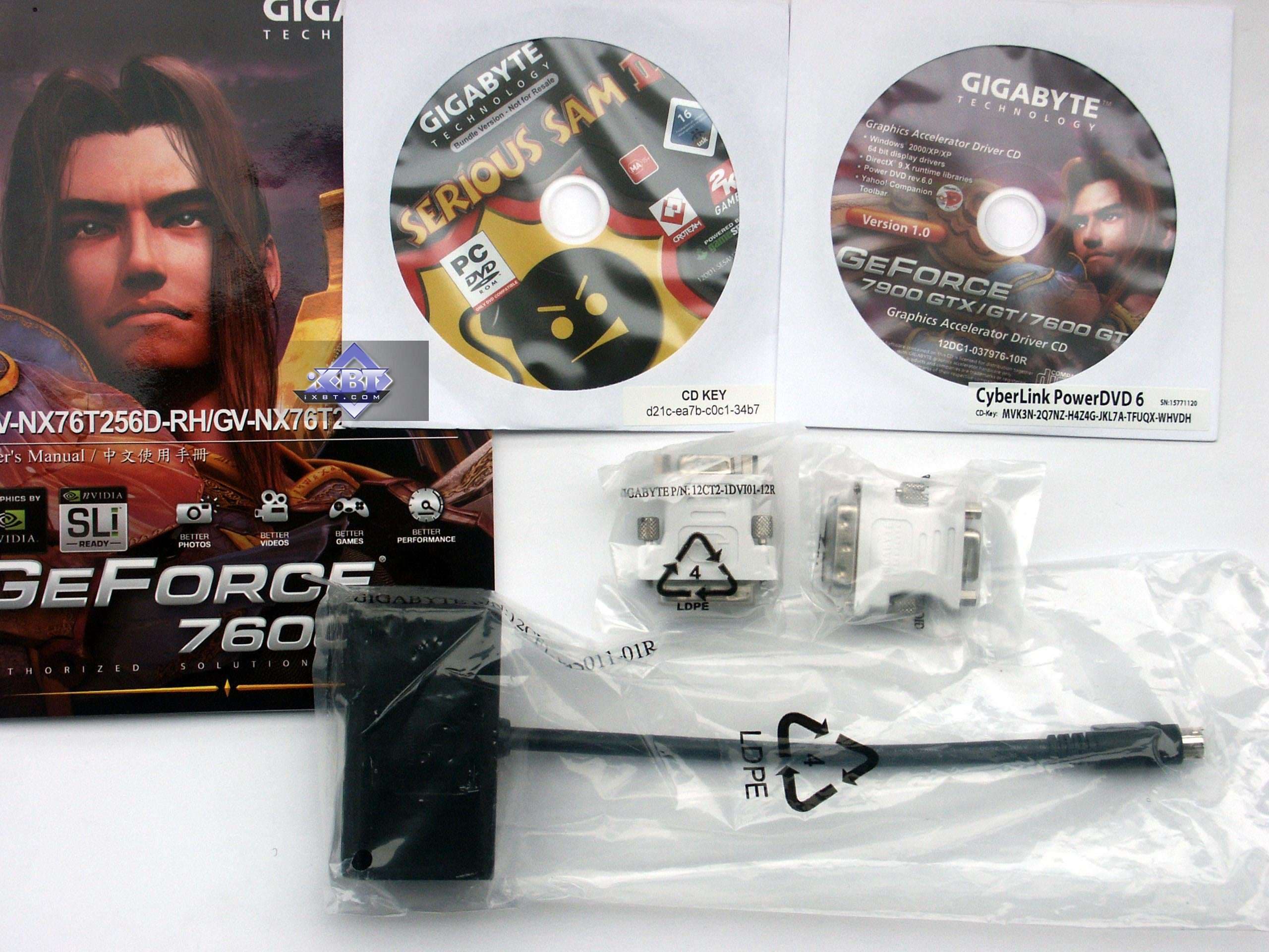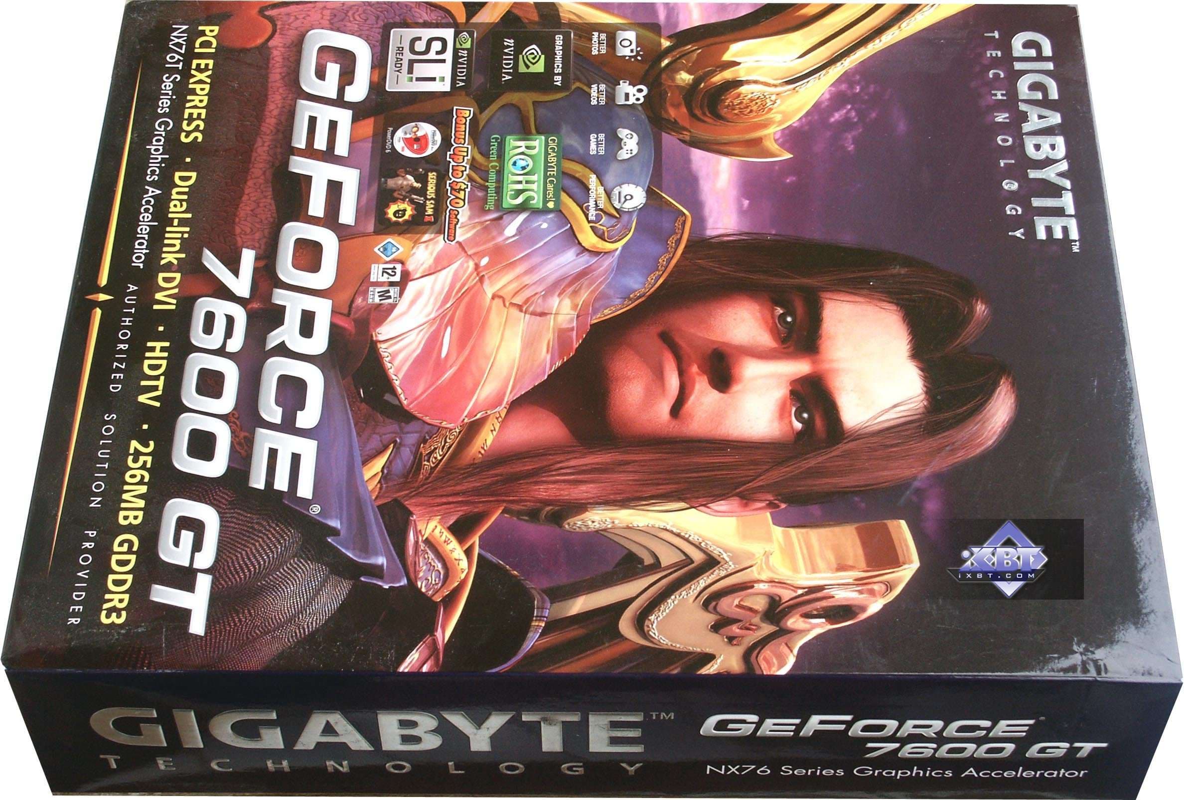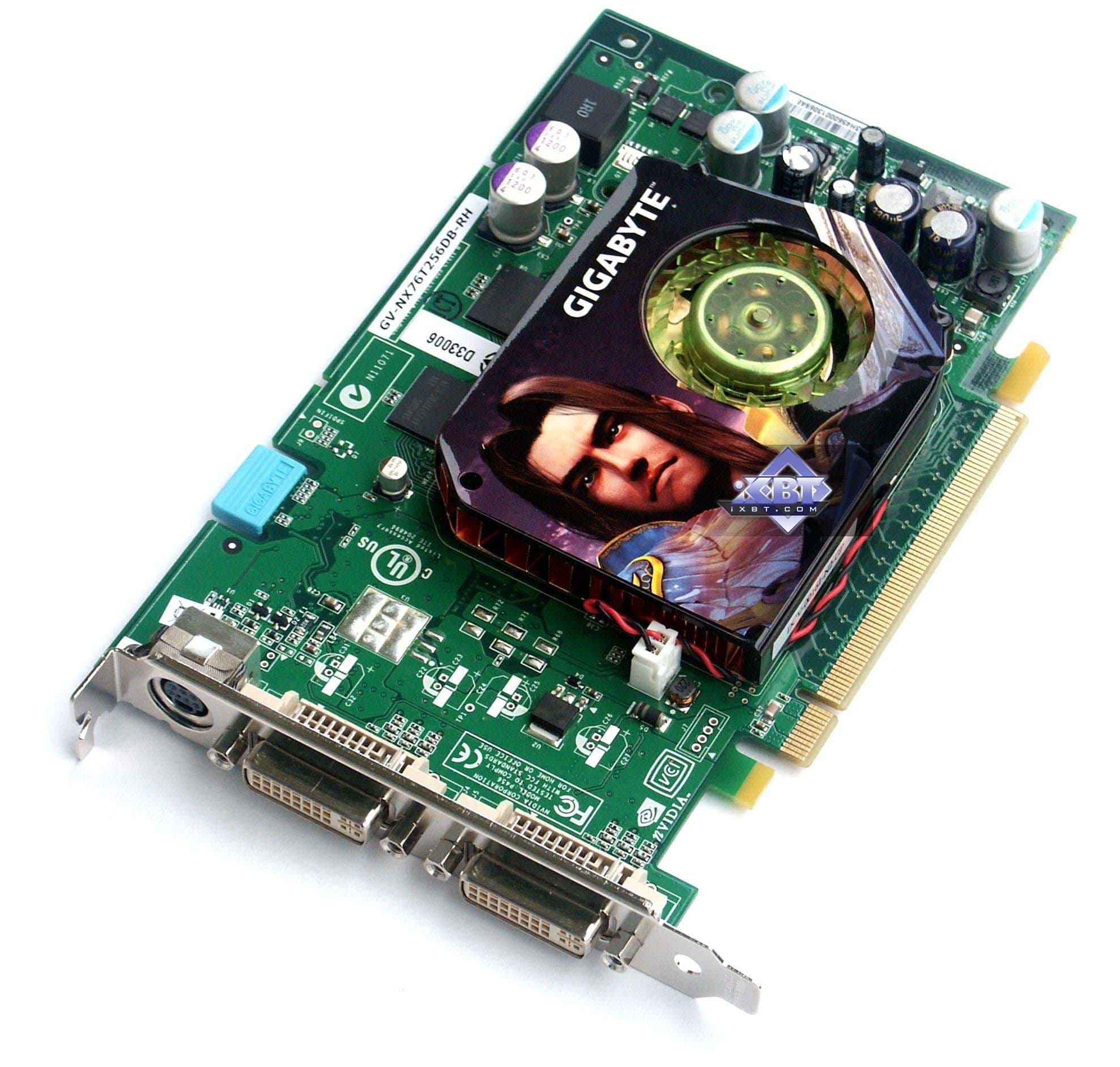 - Gigabyte GeForce 7600 GT 256MB PCI-E — копия референса, положенная в коробку Gigabyte, поэтому ничем примечательным продукт не обладает. Он немного проигрывает X1800 GTO, однако пока и дешевле обходится при покупке. Поэтому следите за ценами.