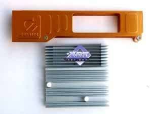 Красная перемычка на другой группе джамперов включает или выключает звуковое предупреждение о неисправности работы карты. И, наконец, самая интересная группа джамперов с желтой перемычкой — позволяет в будущем включать или выключать аппаратный мониторинг работы карты, а также изменения вольтажа ядра. В настоящее время специалисты Galaxy усердно трудятся над Galaxy Smart Panel — так будет называться их утилита, которая и будет отвечать за контроль (мониторинг) и давать возможности по некоторым регулировкам. Перемычка желтого цвета будет разрешать или запрещать делать это. Первая презентация этой утилиты намечена на выставке COMPUTEX'2006.
