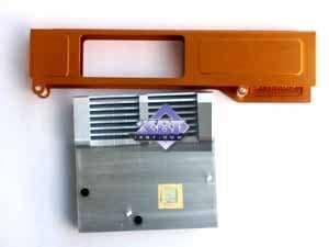 Устройство охлаждения у Axle GeForce 7600 GS 256MB PCI-E весьма простое: банальный кулер закрытого типа «а-ля GeForce4 Ti», охлаждающий ядро (квадратный корпус, вентилятор внутри). Плюс радиаторы на микросхемах памяти, которые, впрочем, там вовсе не нужны, ибо 2.8ns память, работающая в штатном режиме, почти не греется. Здесь стоит отдельно вернуться к начальной теме — возникновению карт с разными частотами и т.д. Перед нами пример такого снижения частот по памяти: 700 МГц вместо положенных 800 МГц. Как покажут результаты, это привело к незначительному падению производительности, однако сам факт того, что не соблюдаются спецификации, вызывает беспокойство. Надо отметить, что дизайн у карты свой, отличный от эталонного, нет даже контактов для SLI-адаптера (что весьма странно!).