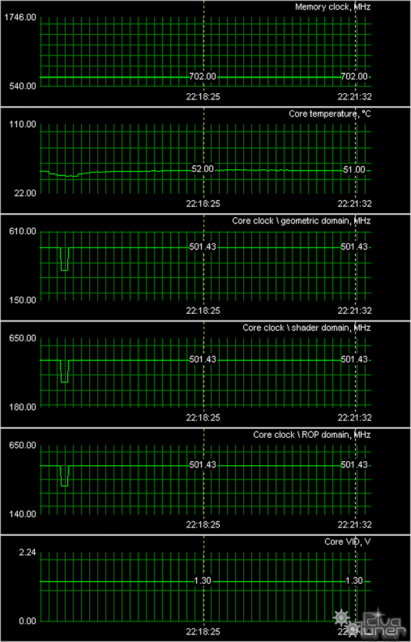 Разумеется, данный продукт и такие частоты можно повесить полностью на производителя Galaxy, сказав, что это их личное дело. Однако считаю, что NVIDIA не должна молчать, видя такие вещи. Разница в частоте в 20-30 МГц — ладно, сейчас модно заниматься разгонами, выпуская всякие Golden-с-чем-то или Extreme-до-небес изделия, однако, когда между референс частотой в 350 МГц и реальной частотой серийного продукта в 500 МГц разница достигает в 150 МГц — это уже слишком. Давайте другие названия, господа производители, и не путайте читателей. Да, на коробке можно написать, что карта с GDDR3, но это не дает ответа — а какие у нее частоты и насколько повышены относительно номинала. Да и достаточно подобных продуктов продается в ОЕМ-виде, где не найти ни частот, ни типа установленной на карте памяти.