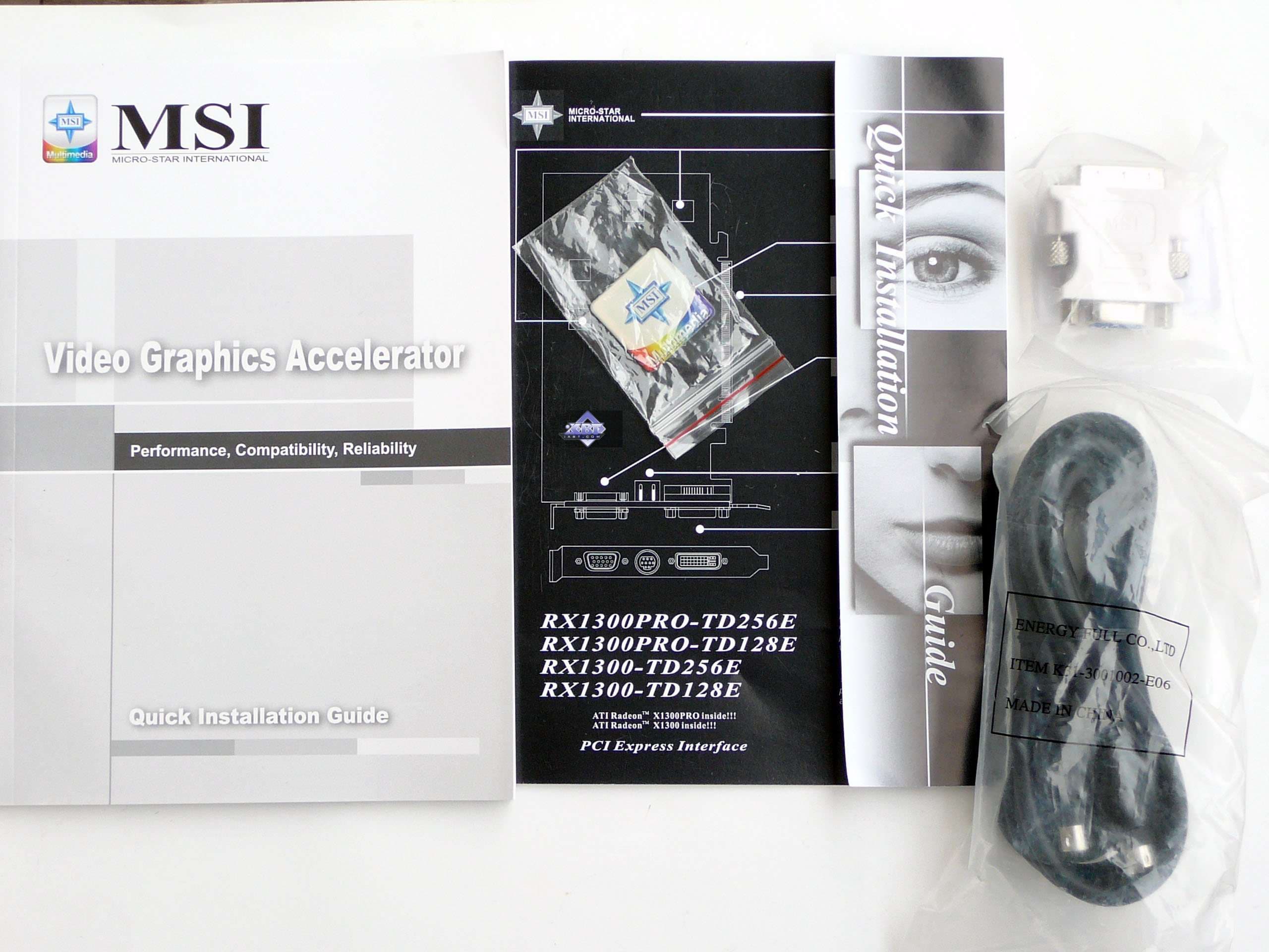 | MSI RADEON X1300 (RX1300) 256MB PCI-E; MSI RADEON X1300 PRO (RX1300 PRO-TD256E) 256MB PCI-E; MSI RADEON X1600 XT (RX1600 XT-T2D256E) 256MB PCI-E; MSI RADEON X1650 PRO (RX1650 PRO-T2D256E) 256MB PCI-E | |