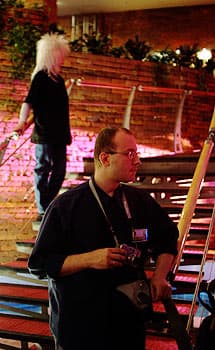 Его презентация посвящена непосредственно GeForce FX. Он не только рассказывает о характеристиках нового GPU но и демонстрирует карту на его основе, а также ее работу в составе демонстрационной системы. Все присутствующие с удовольствием наслаждаются демонстрационными программами NVIDIA и технологическими демками будущих игр. STALKER погружает зал в тишину зрители неотрывно смотрят на экран, с удивлением узнавая привычные элементы. Поверьте, на большом киноэкране игра с таким уровнем детализации выглядит ничуть не менее "кинематографично", чем Final Fantasy! Все затаив дыхание наблюдают за фантастически реальным (если так можно выразится) пейзажем заброшенного советского завода (или НИИ) из демонстрационного пролета в тестовой версии движка STALKER. Заметно, что обилие геометрии заставляет порой притормаживать даже GeForce FX. По субъективным ощущениям средняя скорость 15…30 кадров в секунду. Отметим что на GeForce4 MX440 эта игра идет со скоростью около одного или двух кадров, причем с артефактами. На GeForce4 Ti 4600 около 8..12 кадров. Что ж, эта игра будет серьезным аргументом за покупку нового ускорителя.
