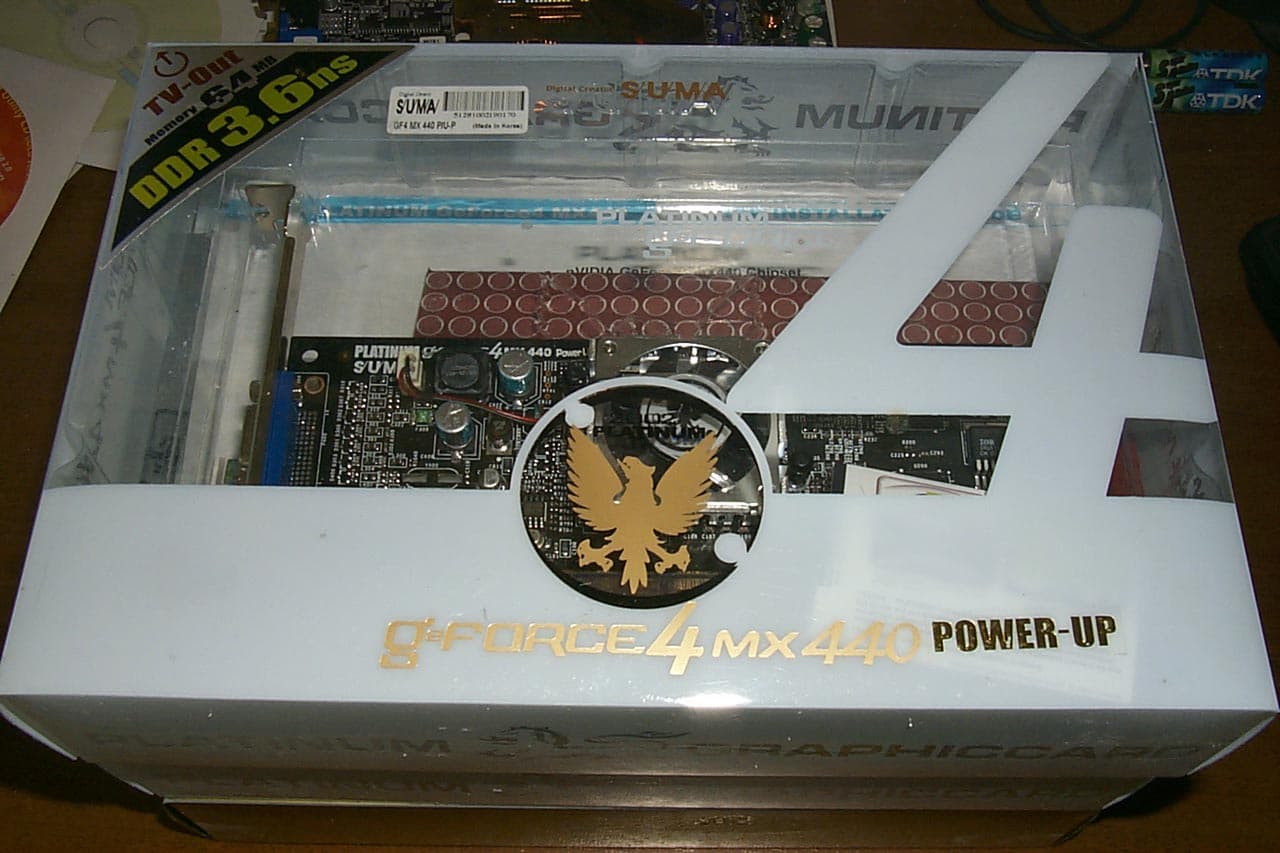 - S/U/M/A/ Platinum GeForce4 MX 440 PowerUp это своего рода попытка сделать гибрид между MX 440 и MX 460 в плане производительности (по видео-возможностям он от MX 440 ничем не отличается). Судя по всему, по цене он от рядового МХ 440 отличается незначительно.