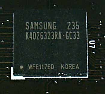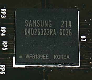 | Память производства Samsung, время выборки 3.6ns. Частота работы видеокарты соответствует нормативу 275/256 (513) МГц. | ![]() |