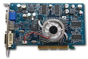 | Карта имеет AGP x2/x4 интерфейс, 64 МБ DDR SDRAM памяти, размещенной в 8-ми микросхемах на обеих сторонах PCB. На видеокарте установлены модули памяти от EtronTech со временем выборки 3.3ns, что соответствует примерно частоте работы 300 (600) МГц, память же работает на частоте 256 (513) МГц. GPU функционирует на частоте 250 МГц. | ![]() |