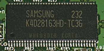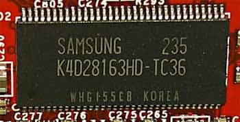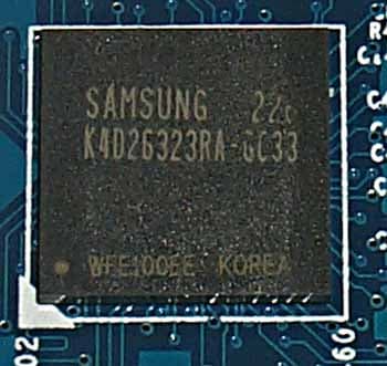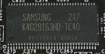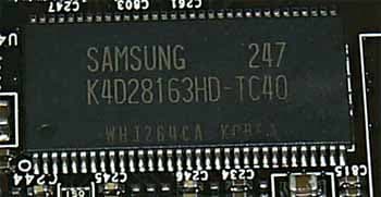 | Микросхемы памяти производства Samsung. Время выборки у микросхем памяти 4ns, что соответствует частоте работы 250 (500) МГц, но память тактуется стандартными значениями частот 256 (512) МГц. GPU функционирует также на обычной для Ti 4200 частоте 250 МГц. | ![]() |