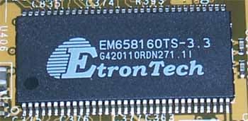 | Микросхемы памяти производства EtronTech. Время выборки у микросхем памяти 3.3ns, что соответствует частоте работы примерно 300 (600) МГц, память же работает на частоте 285 (570) МГц. GPU функционирует на обычной для Ti 4200 частоте 250 МГц. Прошу еще раз обратить внимание на то, что у этой карты не 128, а 64 мегабайта памяти. | ![]() |