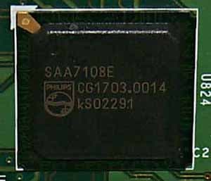 | Philips 7104, обслуживающий только TV-out, поэтому карта VIVO не снабжена. К сожалению, качество TV-out у подобных процессоров от Philips ниже того, что мы могли бы видеть на Conexant. Зря разработчики из Albatron не поставили кодек от Conexant, коли уж дизайн PCB позволяет это сделать. | ![]() |