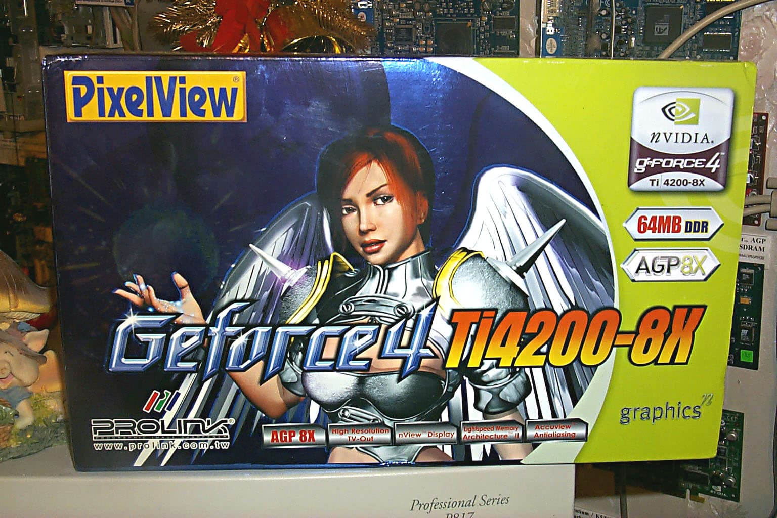 - Prolink PixelView GeForce4 Ti 4200-8x это самая дешевая из ныне выпускаемых Ti 4200-8x карт, поскольку имеет всего 64 мегабайта памяти и всего одно гнездо d-Sub. VIVO нет, в наличии только TV-out;