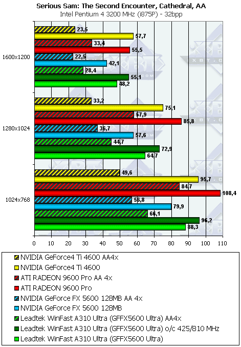 Leadtek WinFast A310 Ultra MyVIVO может дать пользователю:- более высокую скорость в АА и/ или анизотропии, нежели соперники (RADEON 9600 PRO или GF4Ti 4600);