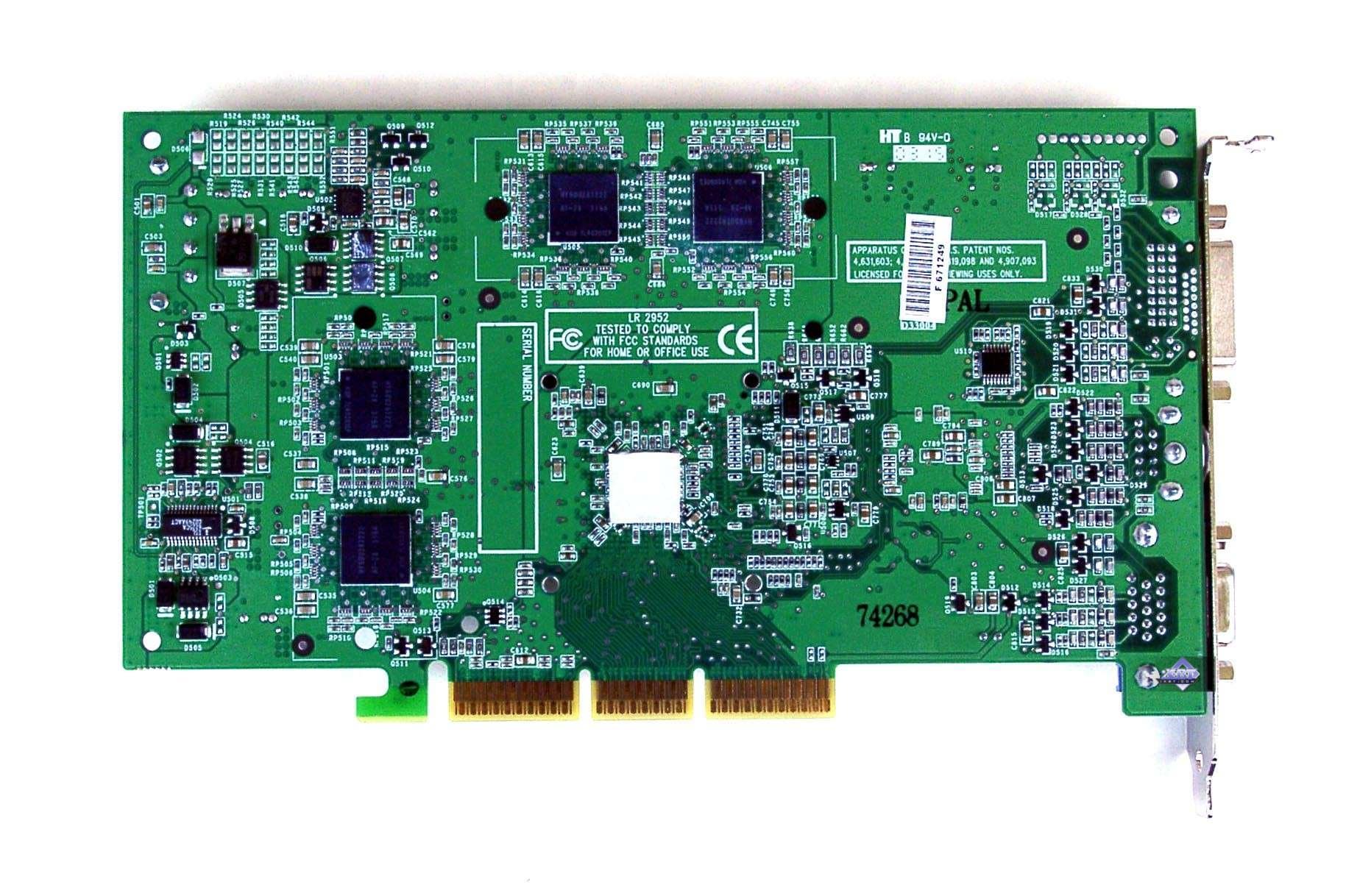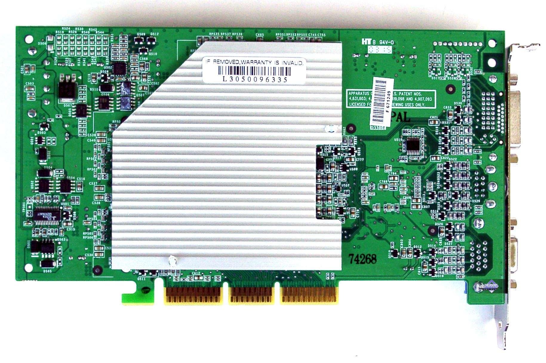 | Карта имеет интерфейс AGP x8/x4/x2, 128 МБ памяти DDR SDRAM , размещенной в 8-ми микросхемах на лицевой и оборотной сторонах PCB. | |