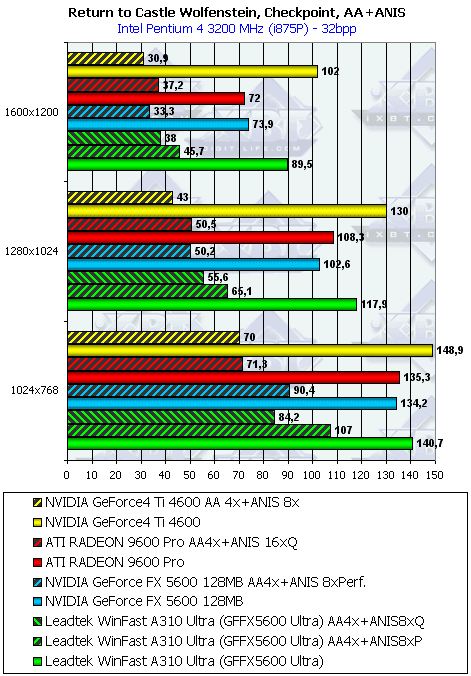 - Return to Castle Wolfenstein (MultiPlayer) (id Software/Activision) OpenGL, мультитекстурирование, Checkpoint-demo, настройки тестирования все на максимально возможном уровне, S3TC OFF, конфигурации можно скачать тут