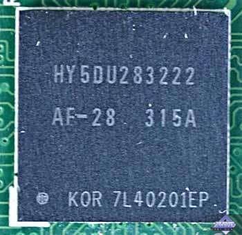 | Микросхемы памяти производства Hynix. Время выборки у микросхем памяти 2.8ns, что соответствует частоте работы примерно 350 (700) МГц, на которой память и работает. Частота работы GPU 350 MHz. Интерфейс обмена с памятью 128 бит. | ![]() |