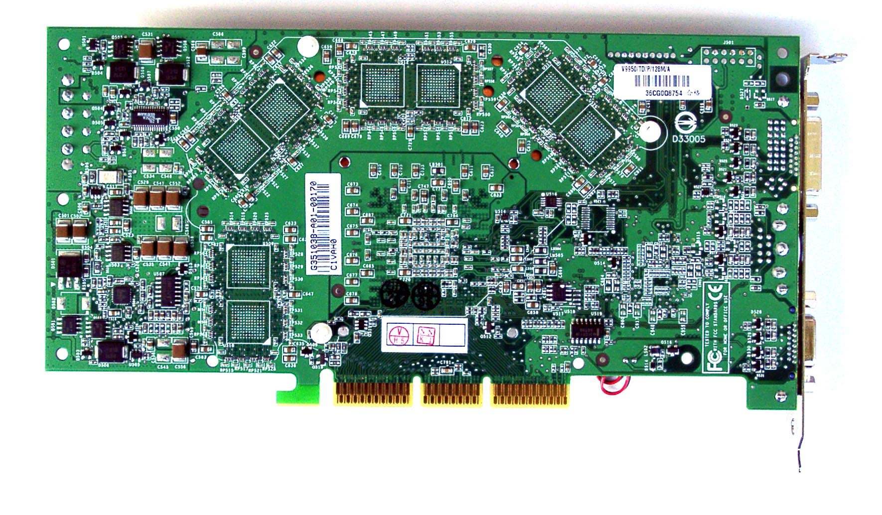 | Карта имеет интерфейс AGP x8/x4/x2, 128 МБ памяти DDR SDRAM , размещенной в 8-ми микросхемах на лицевой стороне PCB. | |