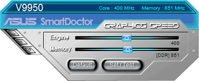 В комплекте поставки кроме драйверов входят фирменные утилиты от ASUS, в числе которых и знаменитый SmartDoctor. Хотя рассматриваемая нами карта не обладает поддежкой мониторинга состояния, эта утилита работает и здесь, правда, превратившись просто в оверклокер:
