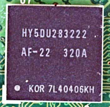 | Микросхемы памяти производства Hynix. Время выборки у микросхем памяти 2.2ns, что соответствует частоте работы примерно 454 (908) МГц, память же работает на частоте 425 (850) МГц. Частота работы GPU 400 MHz. Интерфейс обмена с памятью 256 бит. | ![]() |