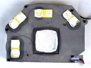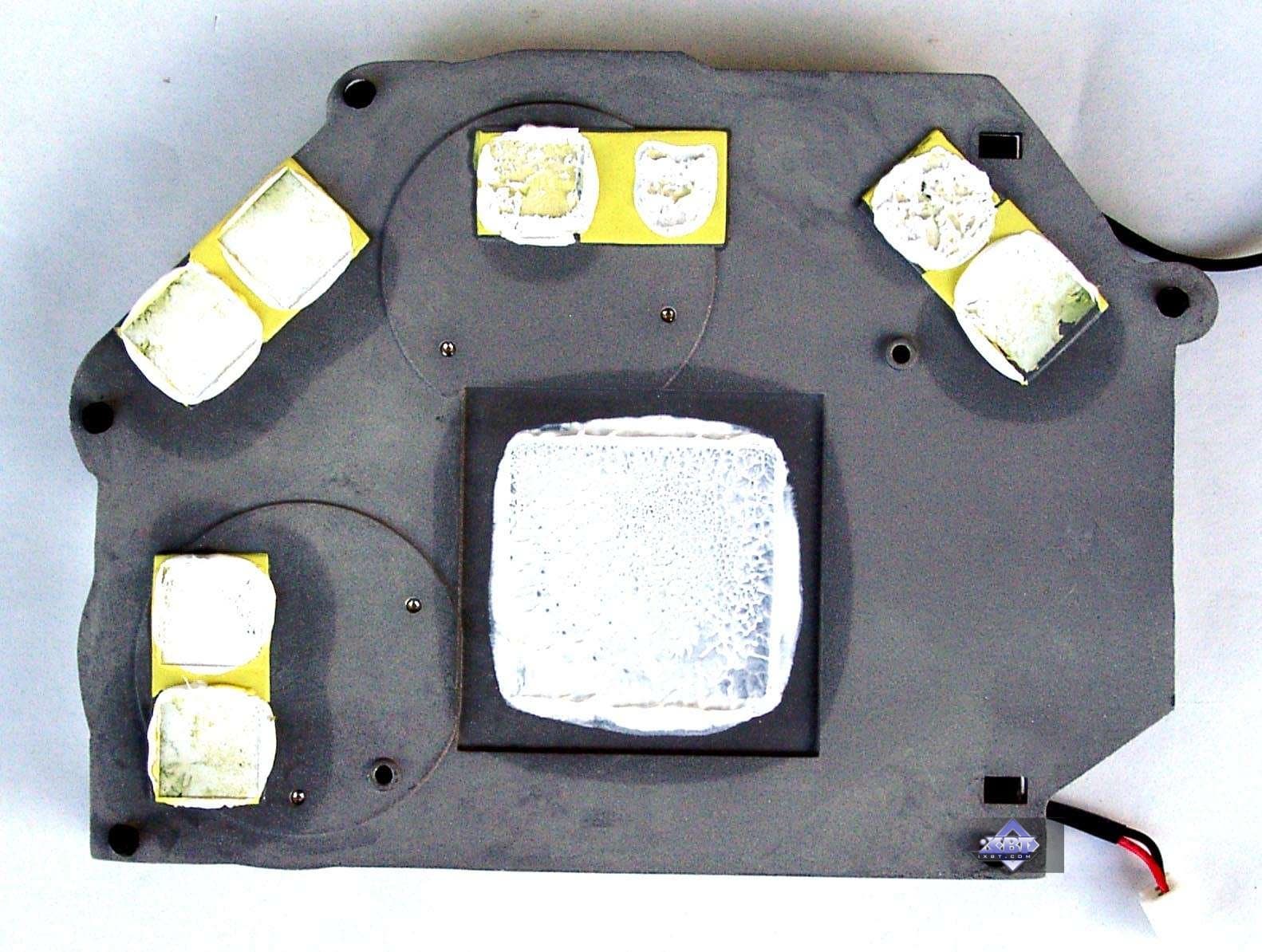 - Уменьшение объема памяти с 256 до 128 мегабайт получилось путем недокомплектации микросхемами памяти (на оборотной стороне можно увидеть пустые места под BGA-микросхемы. Однако 256-битная шина не обрезалась, ведь на карте установлено 8 32-битных микросхем памяти (то есть всего 256бит). Просто уже невозможен так называемый двубанковый режим работы памяти.