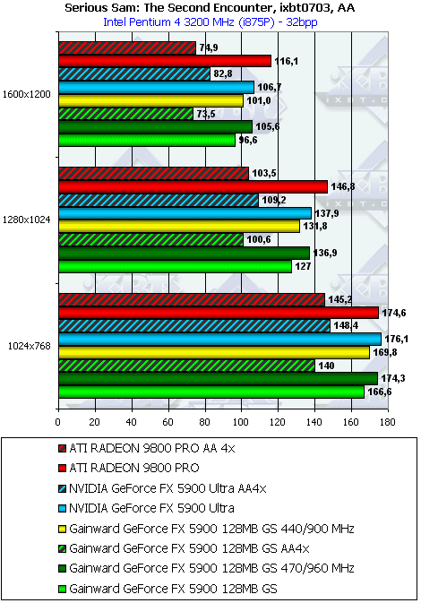 - Serious Sam: The Second Encounter v.1.05 (Croteam/GodGames) OpenGL, мультитекстурирование, ixbt0703-demo, настройки тестирования: quality, S3TC OFF