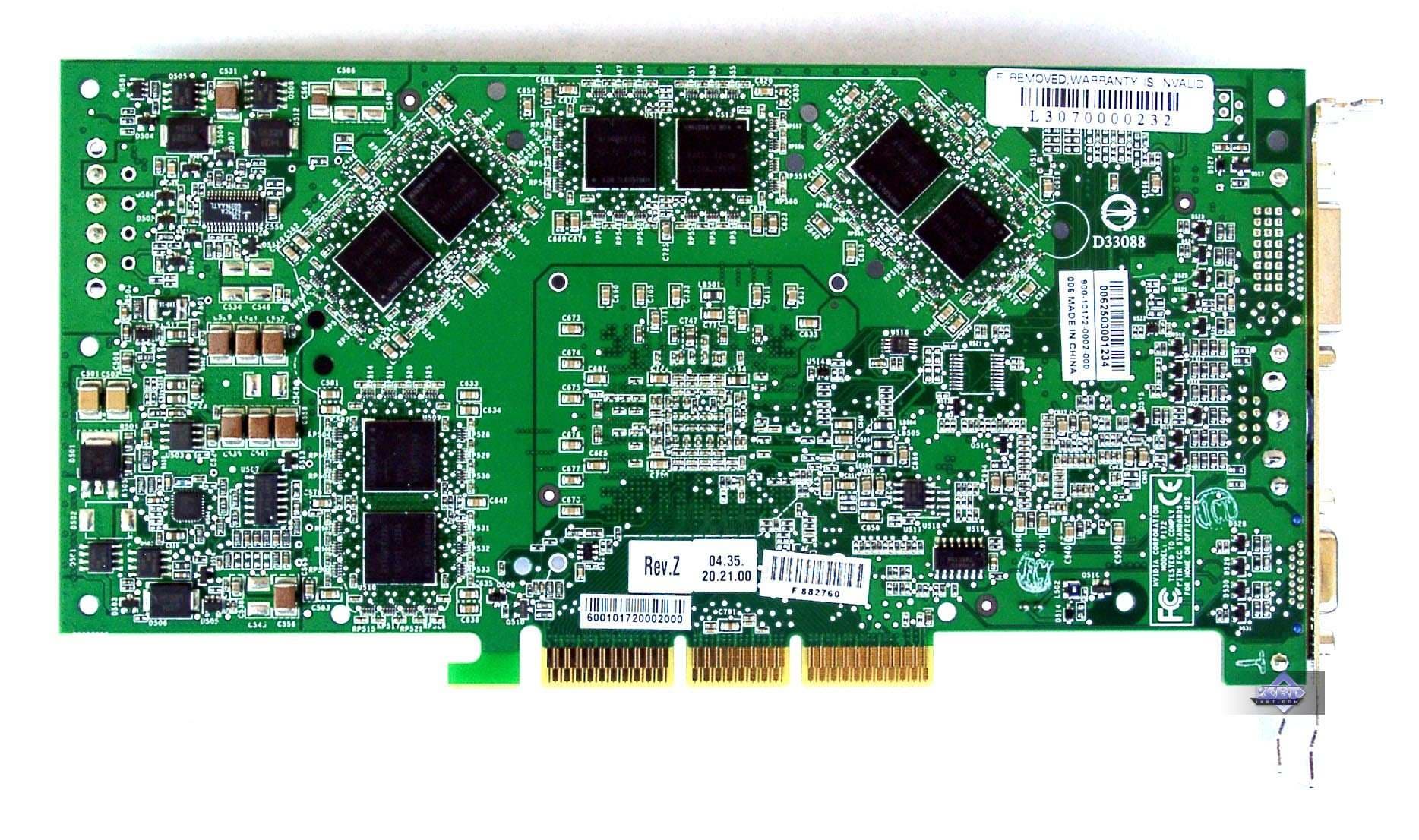 | Карта имеет интерфейс AGP x8/x4/x2, 128 МБ памяти DDR SDRAM , размещенной в 8-ми микросхемах на лицевой стороне PCB. | |