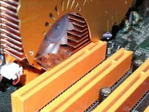 Прекрасно видно, что если PCI-карта имеет какую-либо периферию на оборотной стороне, то она уже не встанет в первый слот, к тому же, при любом раскладе такая карта будет мешать нормальному охлаждению видеоплаты.