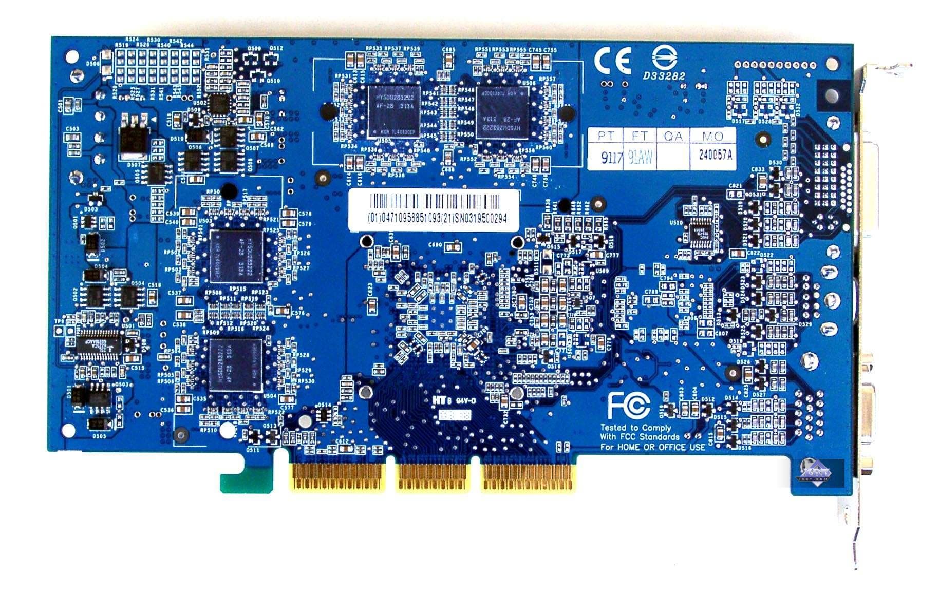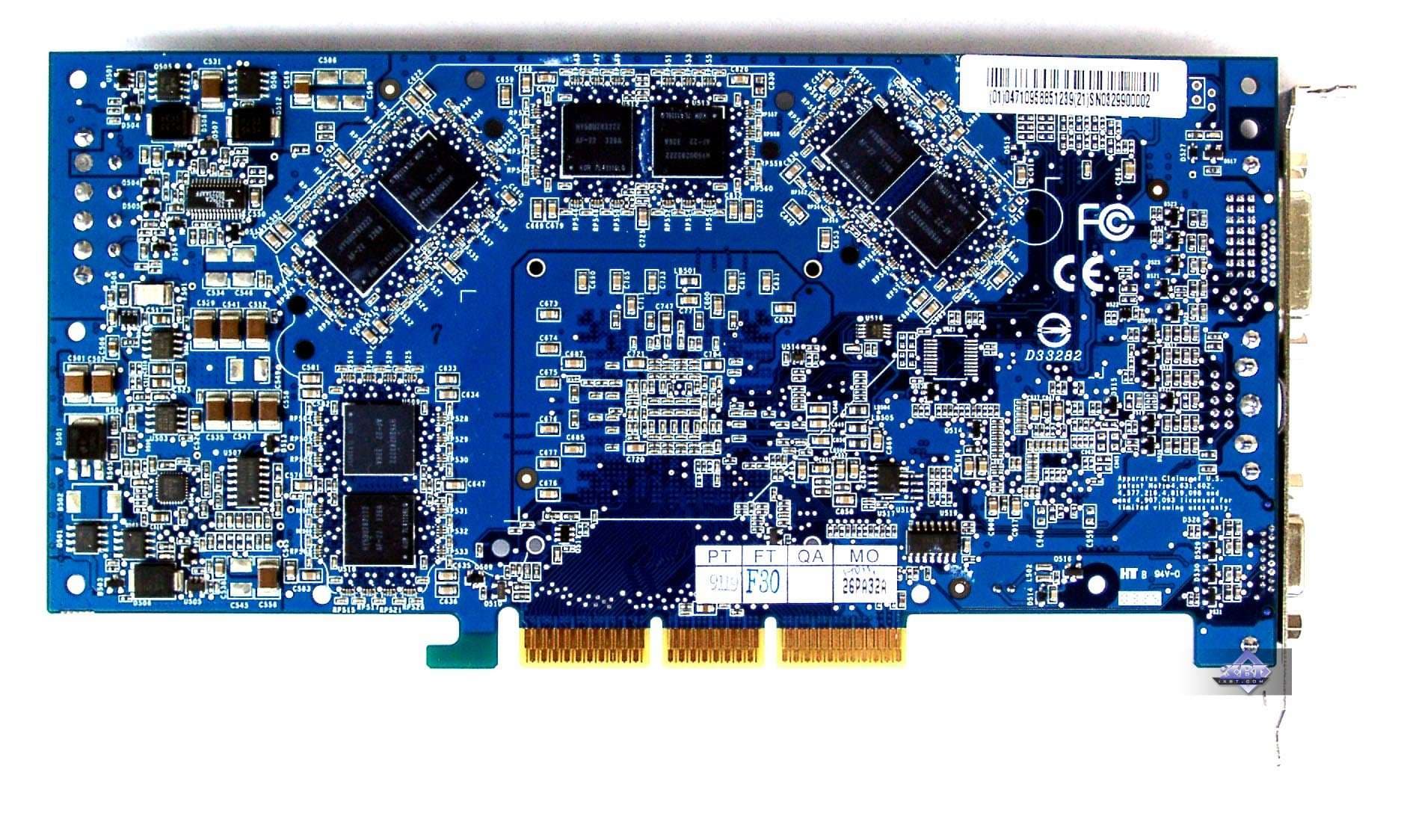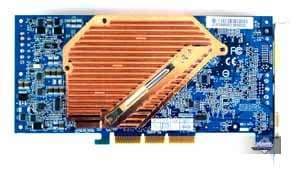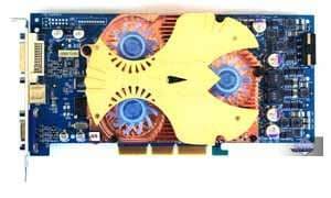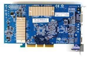 | Карта имеет интерфейс AGP x8/x4/x2, 256 МБ памяти DDR SDRAM , размещенной в 16-ти микросхемах на лицевой и оборотной сторонах PCB. Микросхемы памяти производства Hynix. Время выборки у микросхем памяти 2.2ns, что соответствует частоте работы примерно 454 (908) МГц, память же работает на частоте 425 (850) МГц. Частота работы GPU 410 MHz (обратим внимание на чуть повышенную частоту ядра). Интерфейс обмена с памятью 256 бит. | ![]() |