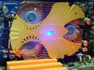 - НА самой карте и на коробке нет ни слова о том, что это «версия 2.0», или хотя бы указания на частоты работы! Но как пользователям теперь различать две совершенно внешне одинаковых карты? Даже микросхемы памяти закрыты радиаторами и маркировку не прочитать! Это грубейшая маркетинговая промашка!. А может и не промашка, а целенаправленные действия (тихо-мирно заменить одну «ультру» на другую, авось никто и не заметит).