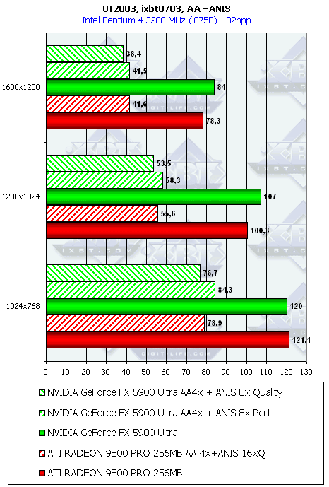А вот тут стОит остановиться. Да, по цифрам все в порядке, лидерство у 5900Ultra. Но вот что было замечено: