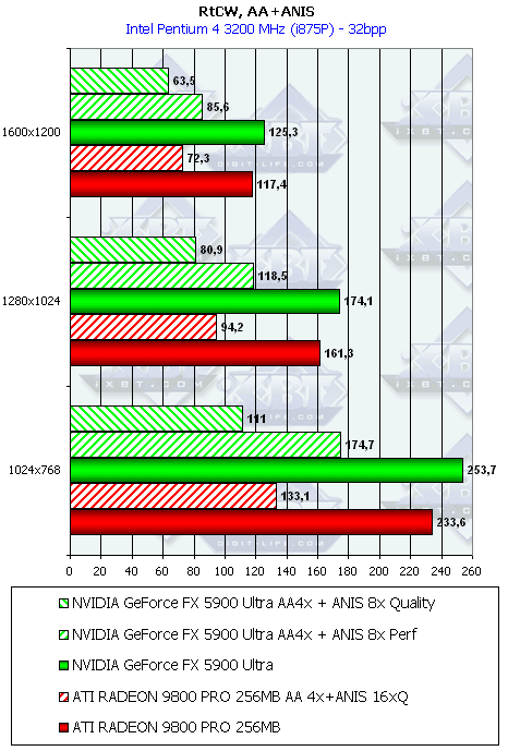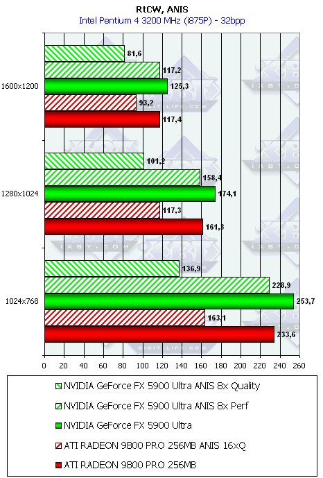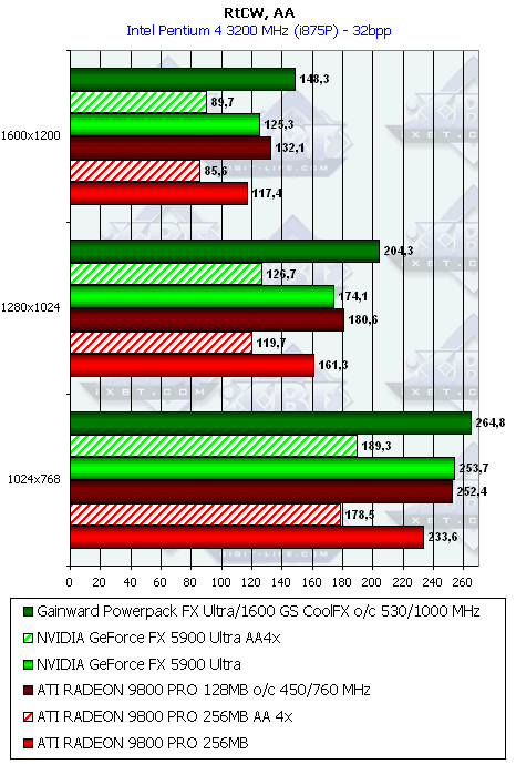 - Return to Castle Wolfenstein (MultiPlayer) (id Software/Activision) OpenGL, мультитекстурирование, ixbt0703-demo, настройки тестирования все на максимально возможном уровне, S3TC OFF, конфигурации можно скачать тут