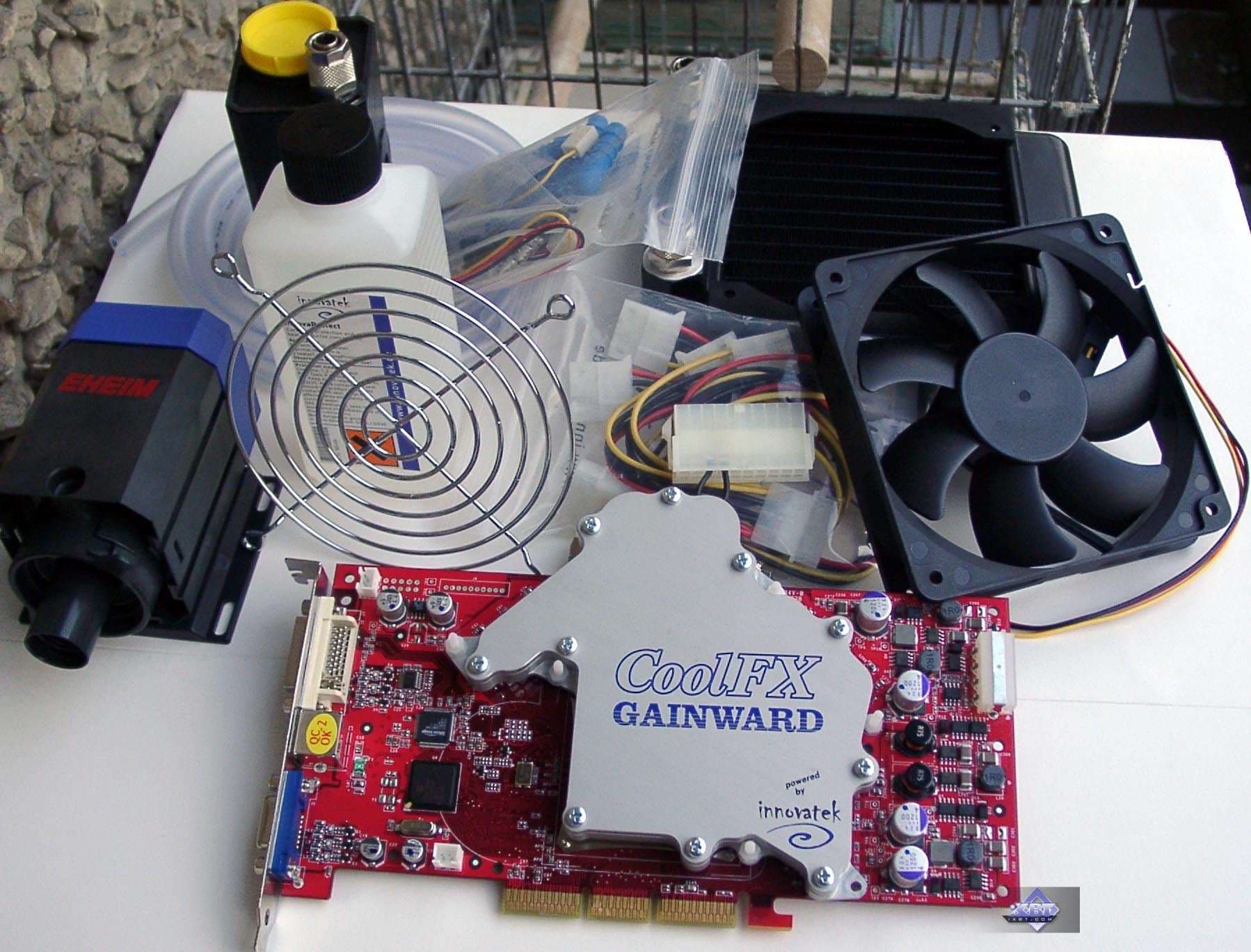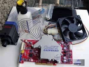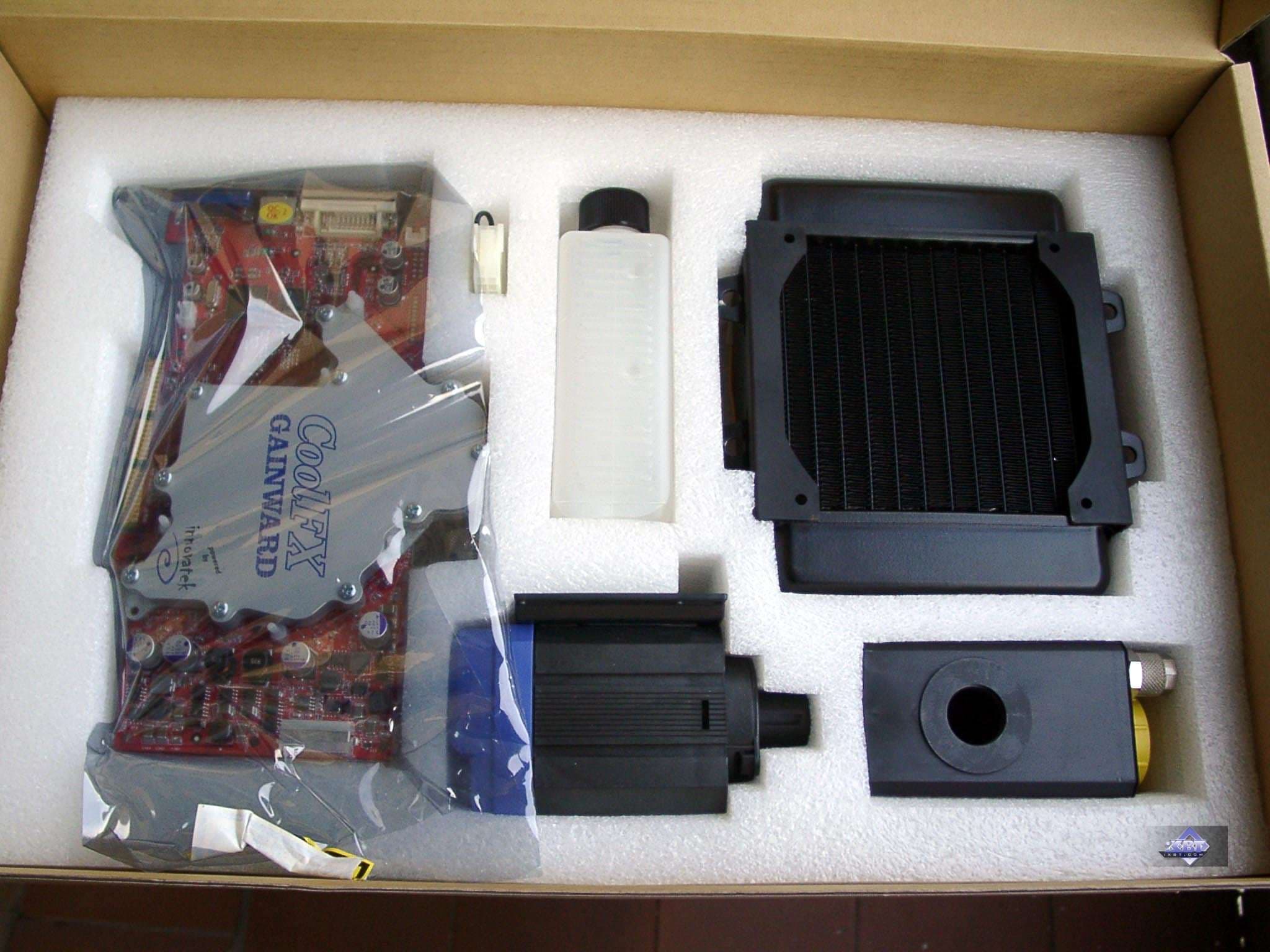 Но самым главным объектом сегодняшнего исследования будет любопытный набор (это даже не видеокарта, а целый конструктов) с водяным охлаждением. Разумеется, при столь высокой цене в 800 евро, желающих купить это изделие найдется очень мало. Поэтому мы рассмотрим Обзор Gainward Powepack FX Ultra/1600 GS CoolFX просто ради интереса, ведь это где-то и уникальный продукт (пока еще не было в истории продаж видеокарт с системой водяного охлаждения).
