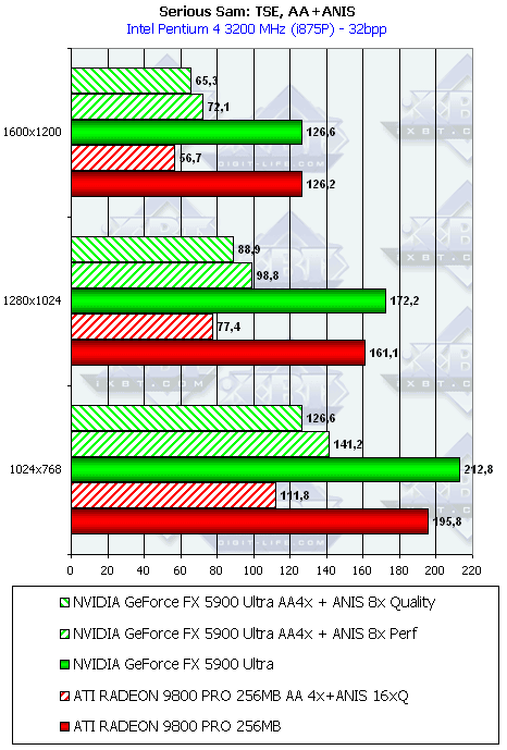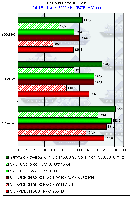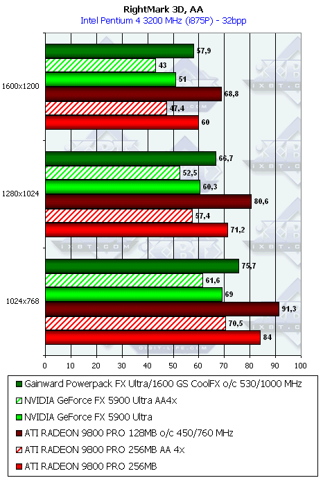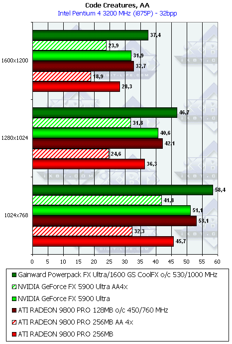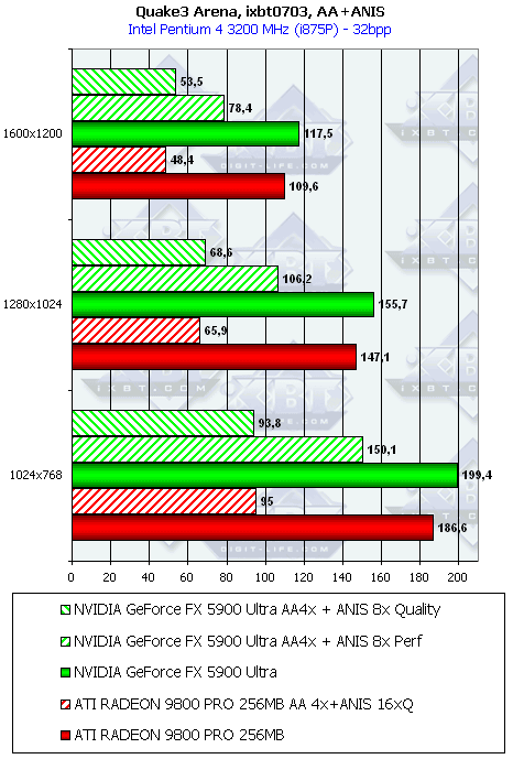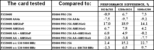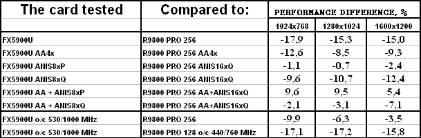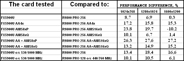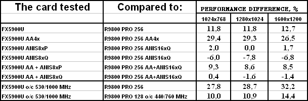 Ну здесь победа RADEON 9800 (уже давно очевидная). Снова скорость шейдеров.