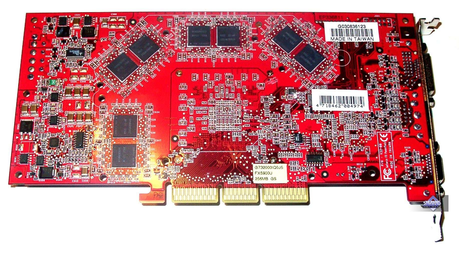 | Карта имеет интерфейс AGP x8/x4/x2, 256 МБ памяти DDR SDRAM , размещенной в 16-ти микросхемах на лицевой и оборотной сторонах PCB. | |