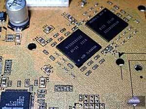 Мы прекрасно помним, что нечто подобное делает и Triplex, правда, там напыление серебряное. Если сравнить качество напыления с тем, какое на платах от Triplex, то можно заметить разницу: серебро напылено более плотно, и во избежание электрических коллизий, место под каждый элемент логики тщательно изолировалось при напылении. В случае карты от Prolink мы такого не наблюдаем. Однако, нас заверили в компании, что это не фикция и не подделка под золотое напыление. Эта технология должна уберечь карту от наводок, а также способствовать лучшему охлаждению.