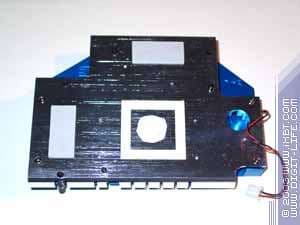 Несмотря на то, что система охлаждения не занимает 1-й слот PCI, кромка крышки радиатора находится в 3-4 мм от центра 1-го слота PCI, поэтому ясно, что в такой слот войдет только плата, имеющая совершенно гладкую оборотную сторону. Впрочем, все равно не рекомендуем ставить что-либо в этот слот, — нарушится охлаждение видеокарты.