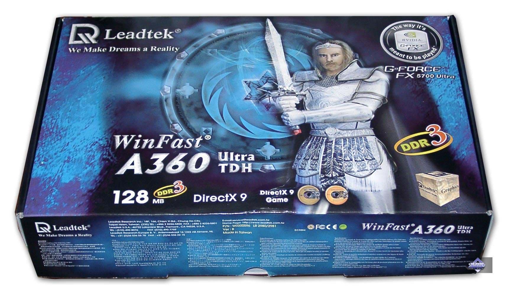 - Leadtek WinFast A360 Ultra TDH 128MB DDR3 хороший продукт от ведущего бренда, отличается прекрасным качеством исполнения. Установка DDR3 памяти позволила снизить нагрев карты, а также поднять частоты работы памяти. Будет хорошим конкурентом продуктам ATI в своем сегменте… но только после исчезновения с рынка GeForce FX 5900XT, который ныне сделал 5700 Ultra вообще не привлекательным, ибо цены у них почти равны (около 200 долларов на начало апреля). Разгон у этой карты превосходен: 575/1150 МГц!
