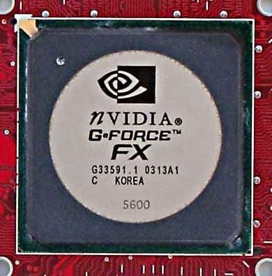 Хорошо известно, что этот GPU выполнен уже по 0.13 мкм техпроцессу. Снова обратим внимание на то, что он сделан в Корее. Мы уже говорили, что у TSMC нет фабрик в Корее, а у IBM есть. Поэтому вероятно, что GeForce FX 5600 производятся уже на мощностях IBM.